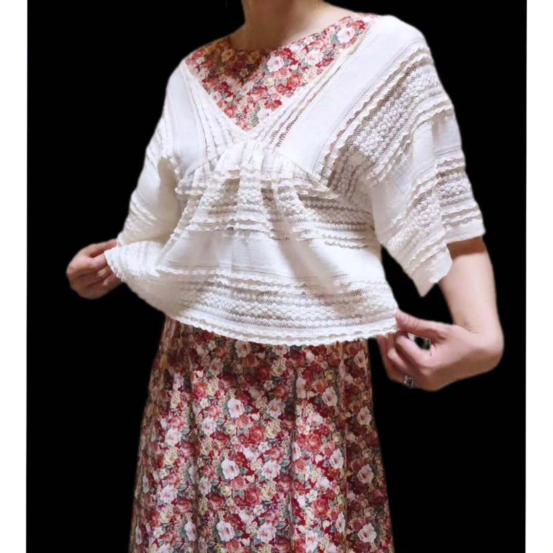 バタフライスリーブがとても素敵な、ヴィンテージのレーストップスです。
