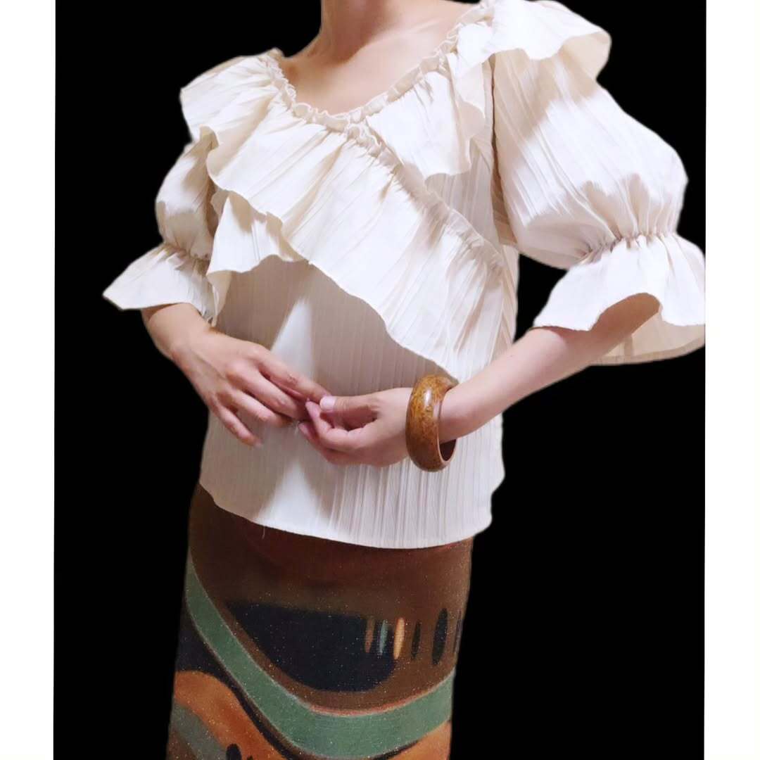 存在感のあるフリルカラーがたまらなく素敵な、ヴィンテージのトップスです。