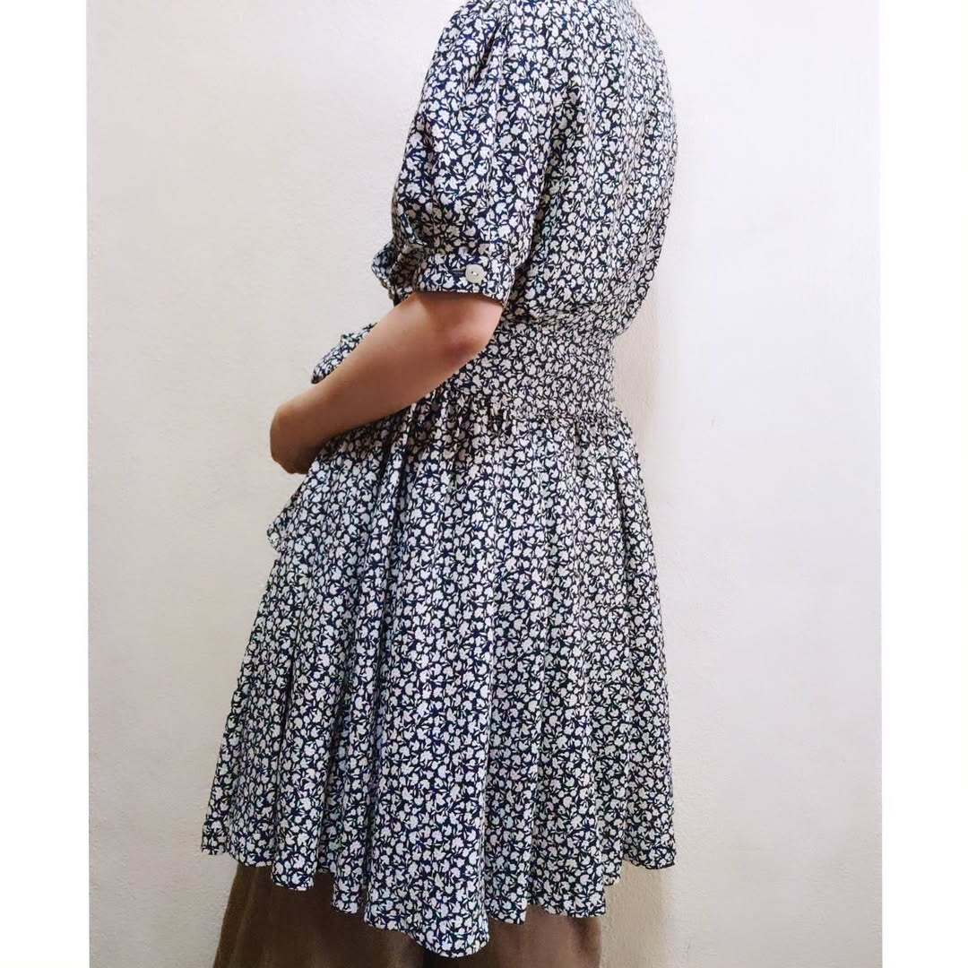 小花柄がとてもおしゃれで、ウエストはリボンで結ぶデザインになっていて、凄く可愛いです。