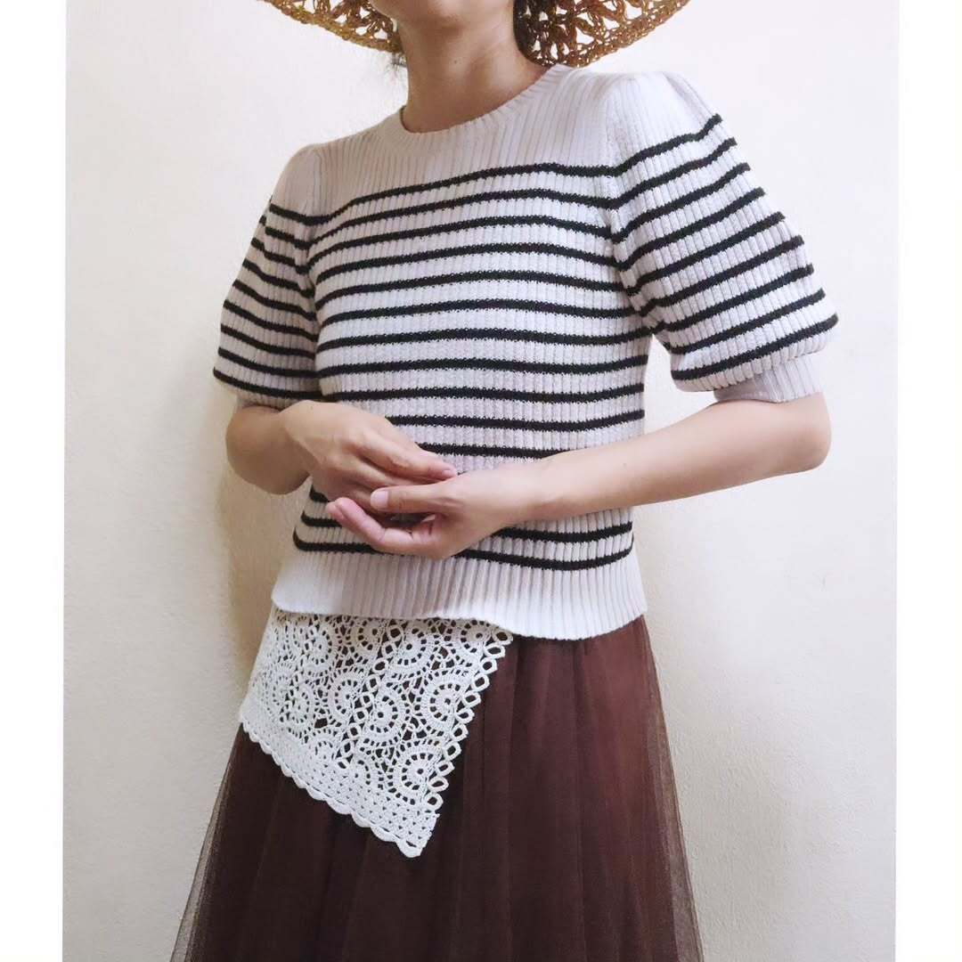 ボーダー柄とボリュームスリーブのデザインがたまらなく可愛い、ヴィンテージのサマーニットです。