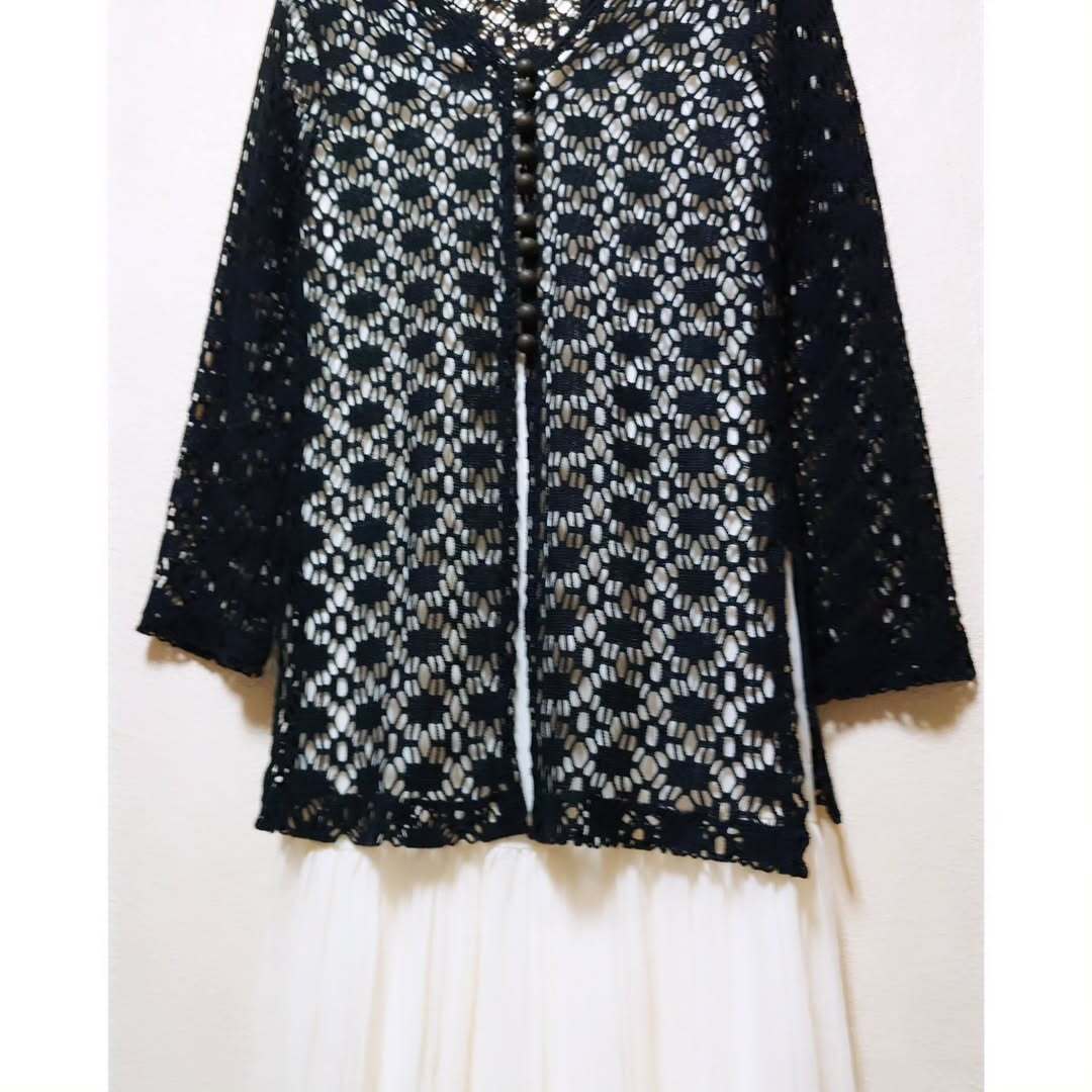 クロシェレース編みがたまらなく素敵な、ヴィンテージのロングトップスです。