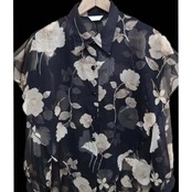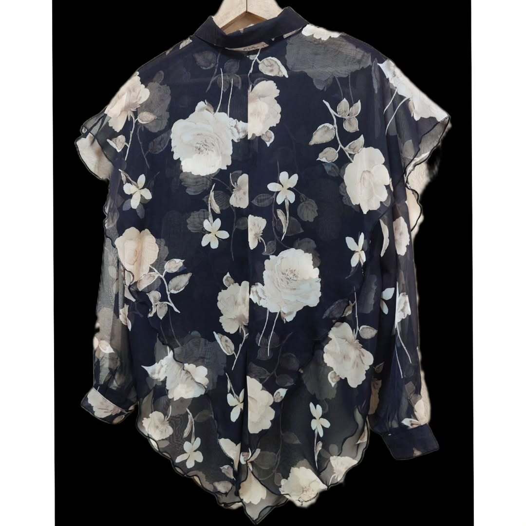 雰囲気のある花柄と、存在感のあるフリルカラーデザインがたまらなく素敵な、ヴィンテージのシャツです。