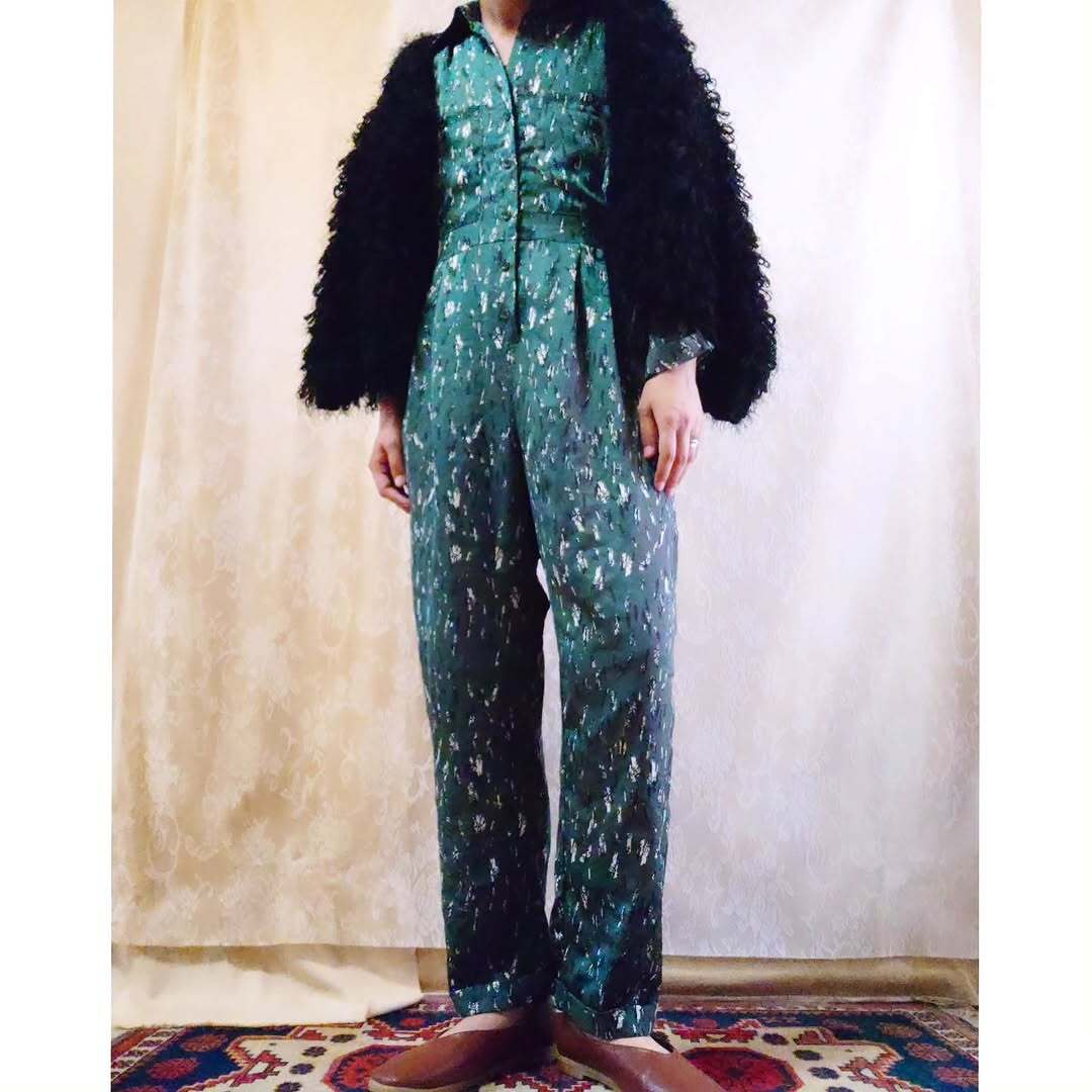 個性的な柄と色味がとても素敵な、ヴィンテージのオールインワンです。