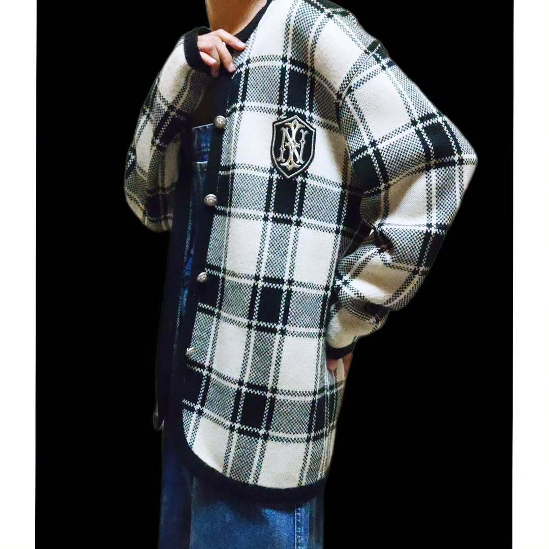 vintage plaid emblem knit cardigan