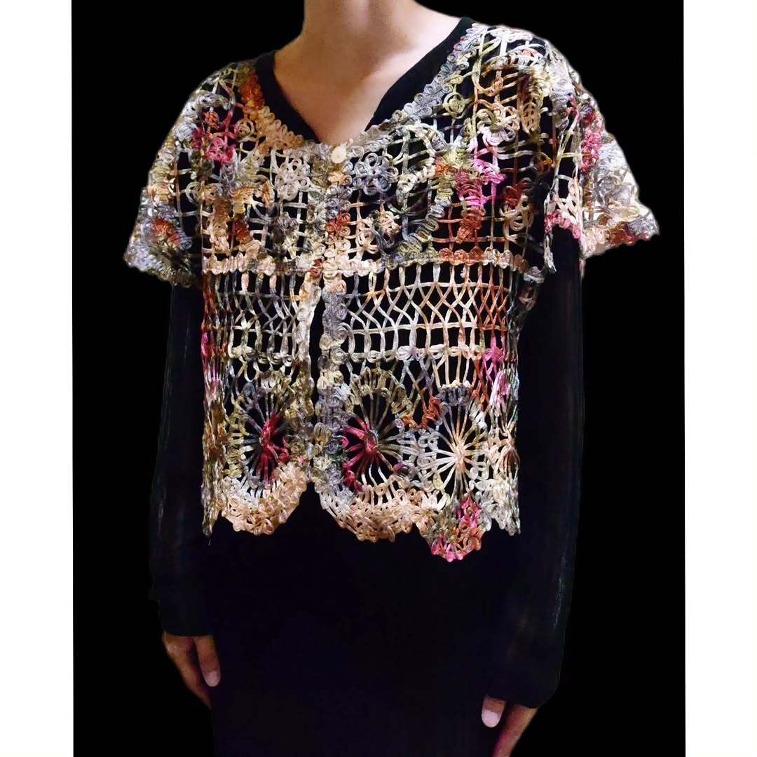 vintage floral crochet net vest