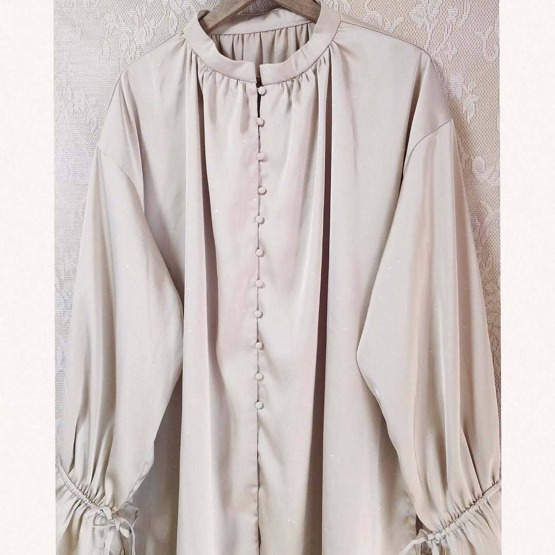 首元はスタンドカラータイプで、両サイドにはスリットが入ったデザインになっています。
