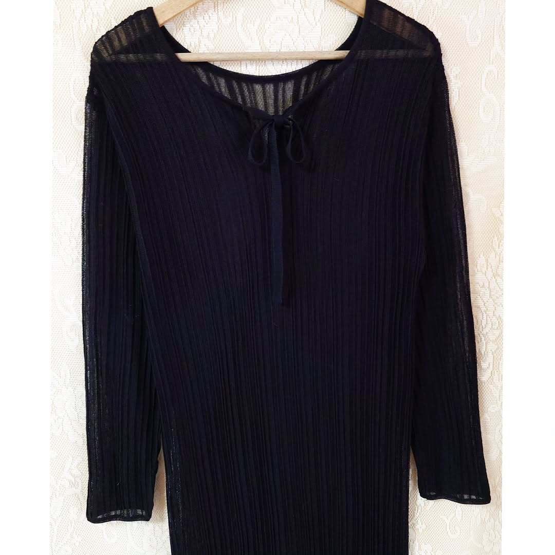 シルエットがとても美しい、ヴィンテージのポリエステルニットワンピースです。