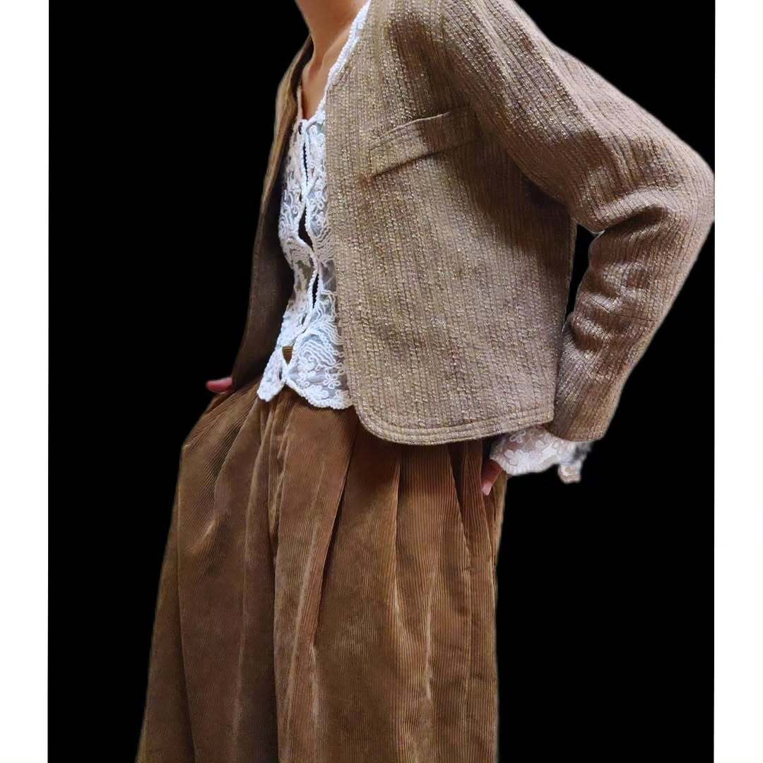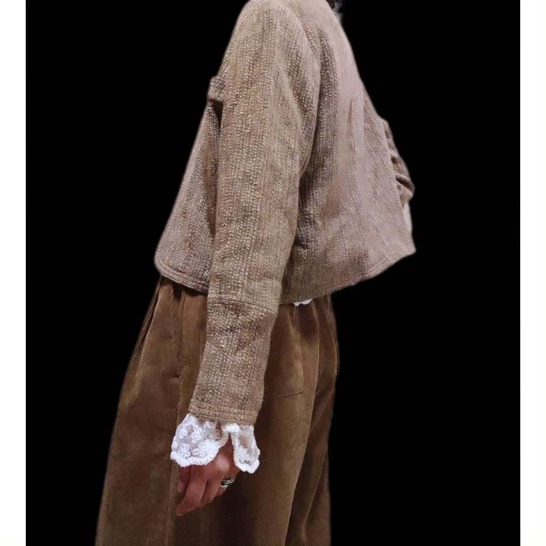 品質タグがなくはっきりは分かりませんが、ツイードブレンドのポリエステル素材になるかと思います。