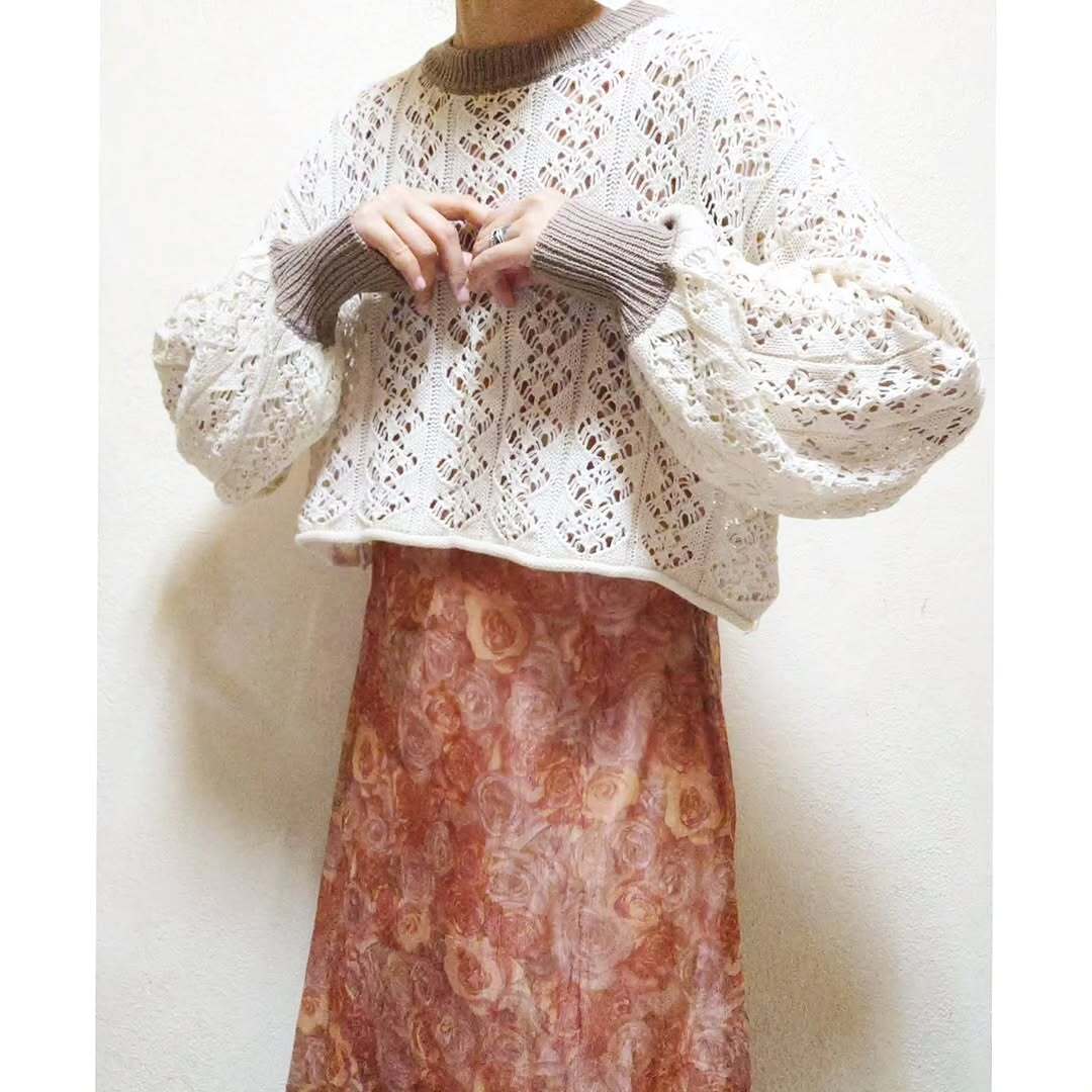 細かいレース編みがたまらなく可愛いヴィンテージのニットを、ショート丈にリメイクし更に可愛いしたニットです。