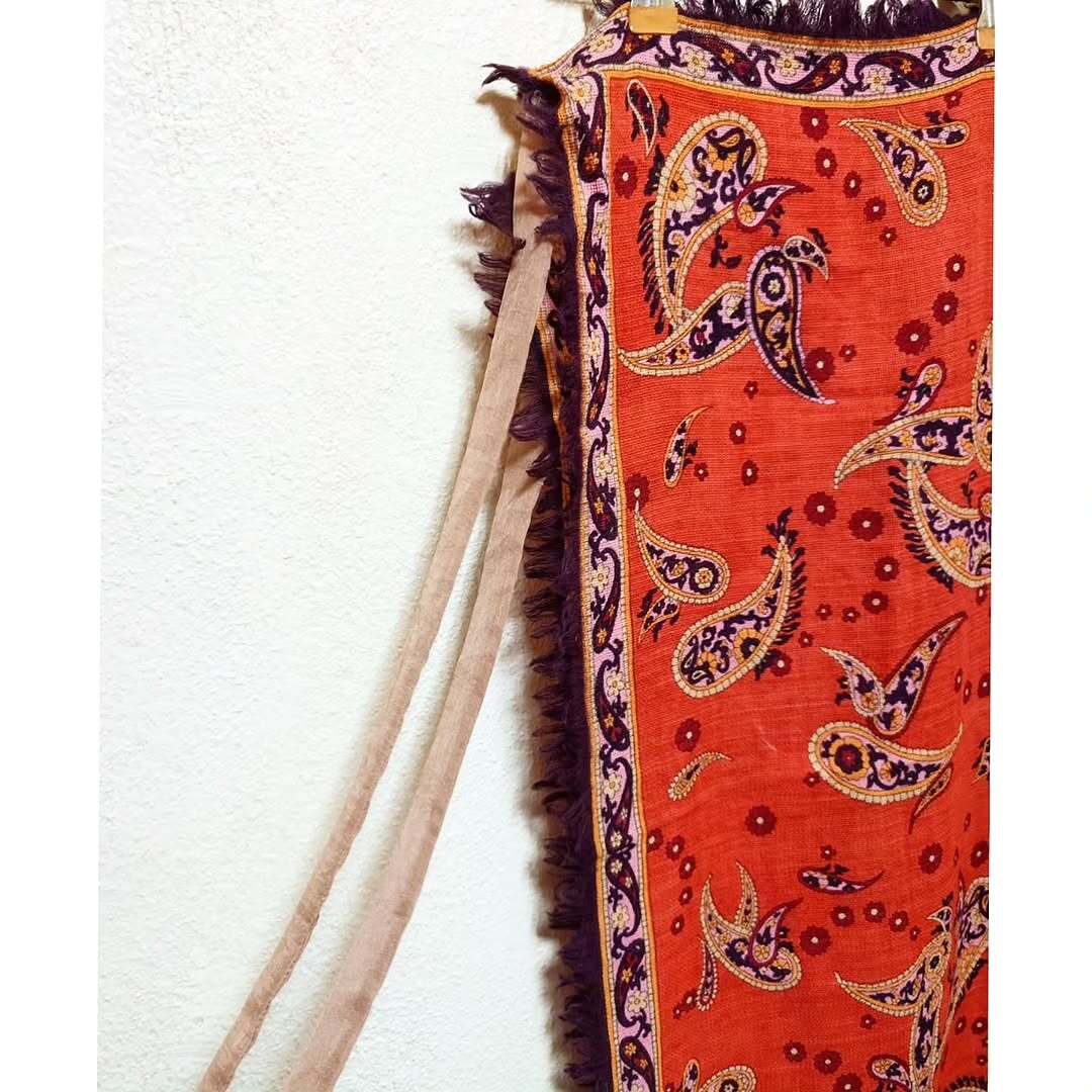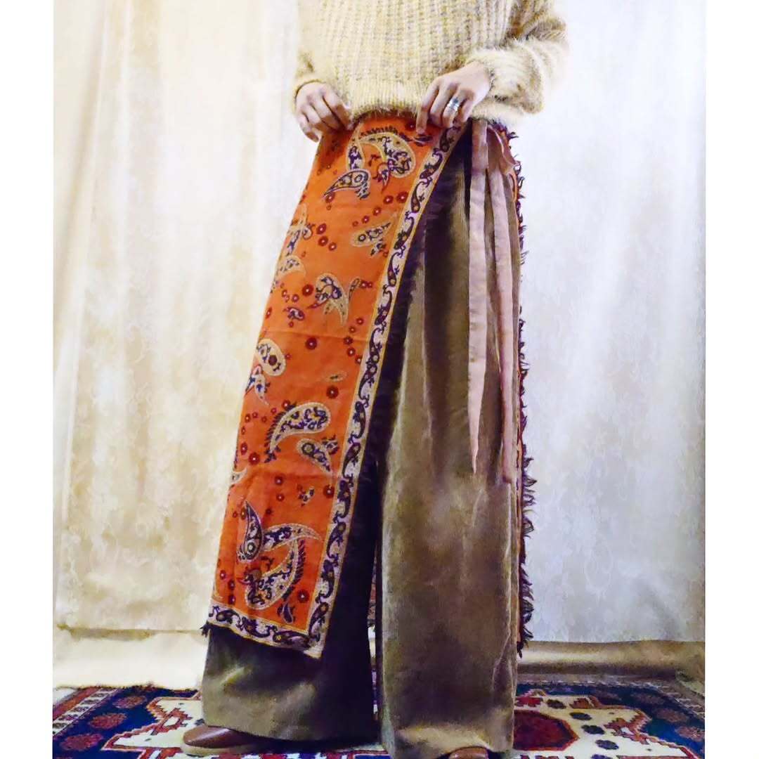 ヴィンテージのスカーフを、ラップスカートにリメイクした、とても素敵な一着です。