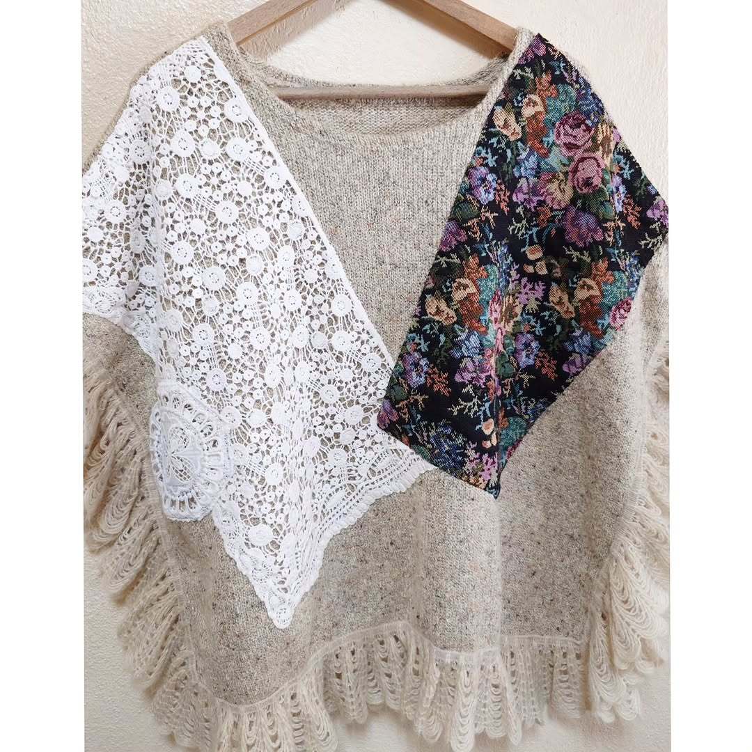 ニットで編まれたバテンレースがたまらなく素敵な、ヴィンテージのニットをリメイクした一着です。