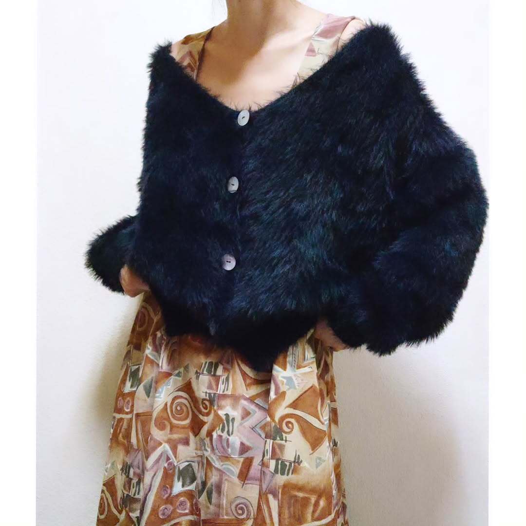 柔らかさを感じるエコファー素材がたまらなく素敵な、ヴィンテージのカーディガンです。