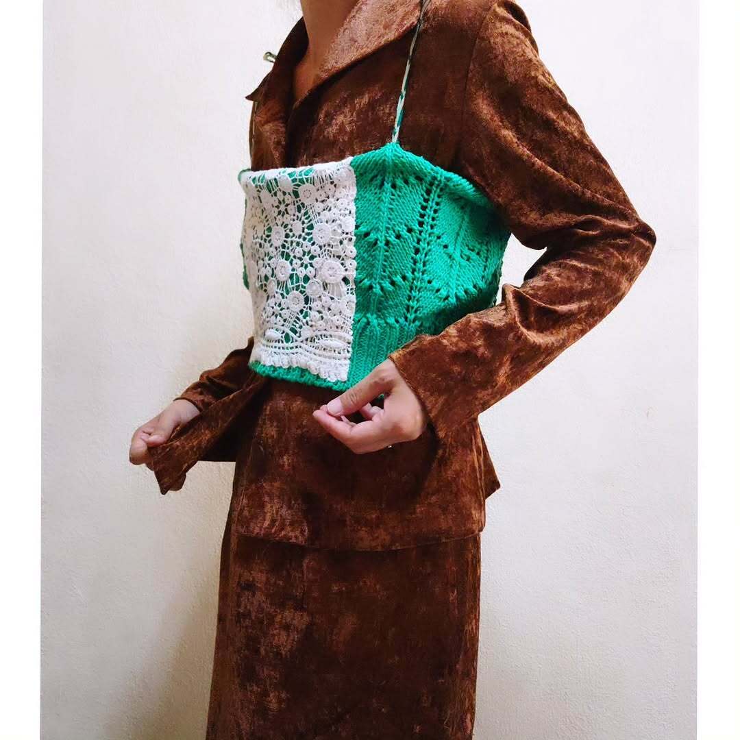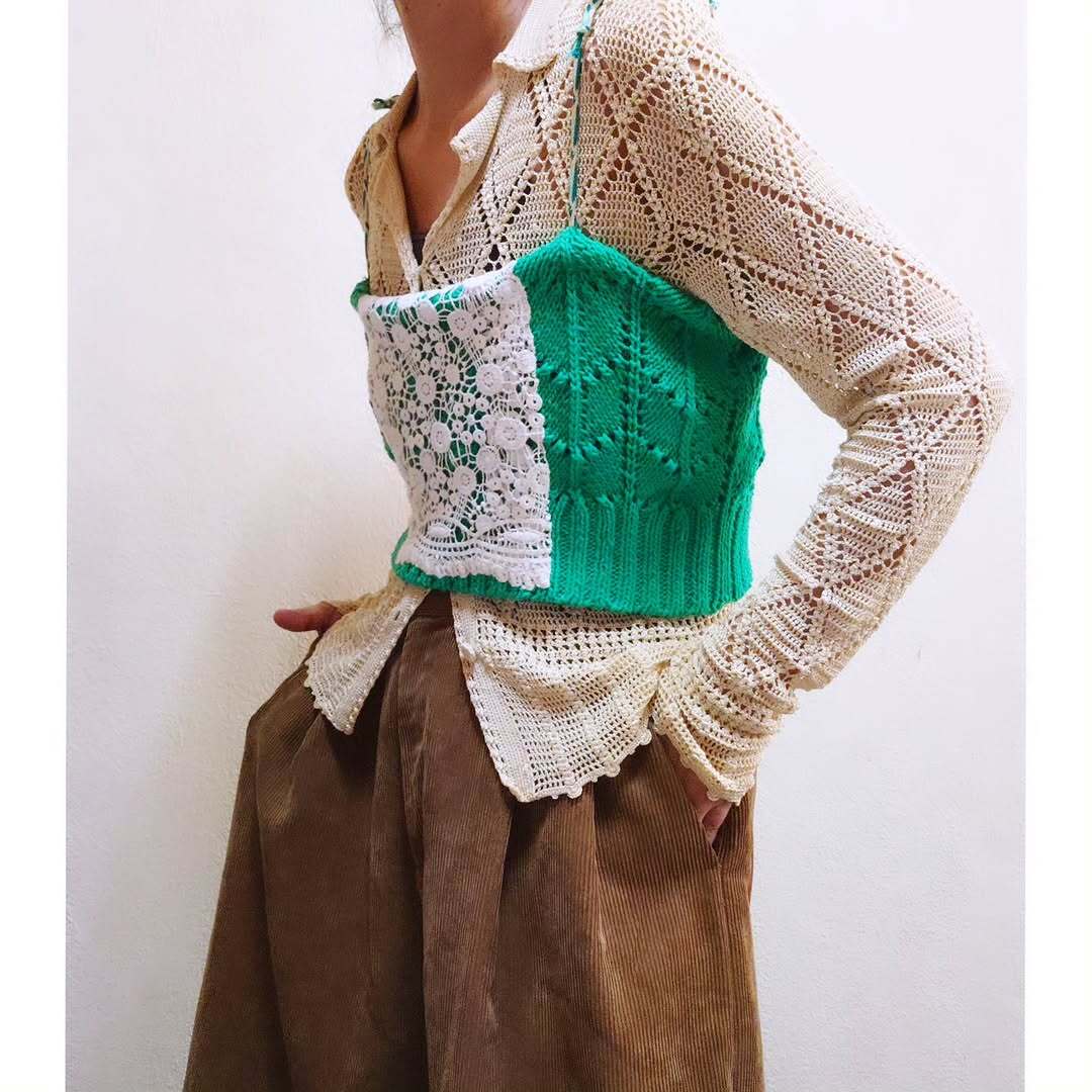 ヴィンテージのニットをビスチェにリメイクした、たまらなく可愛い一着です。