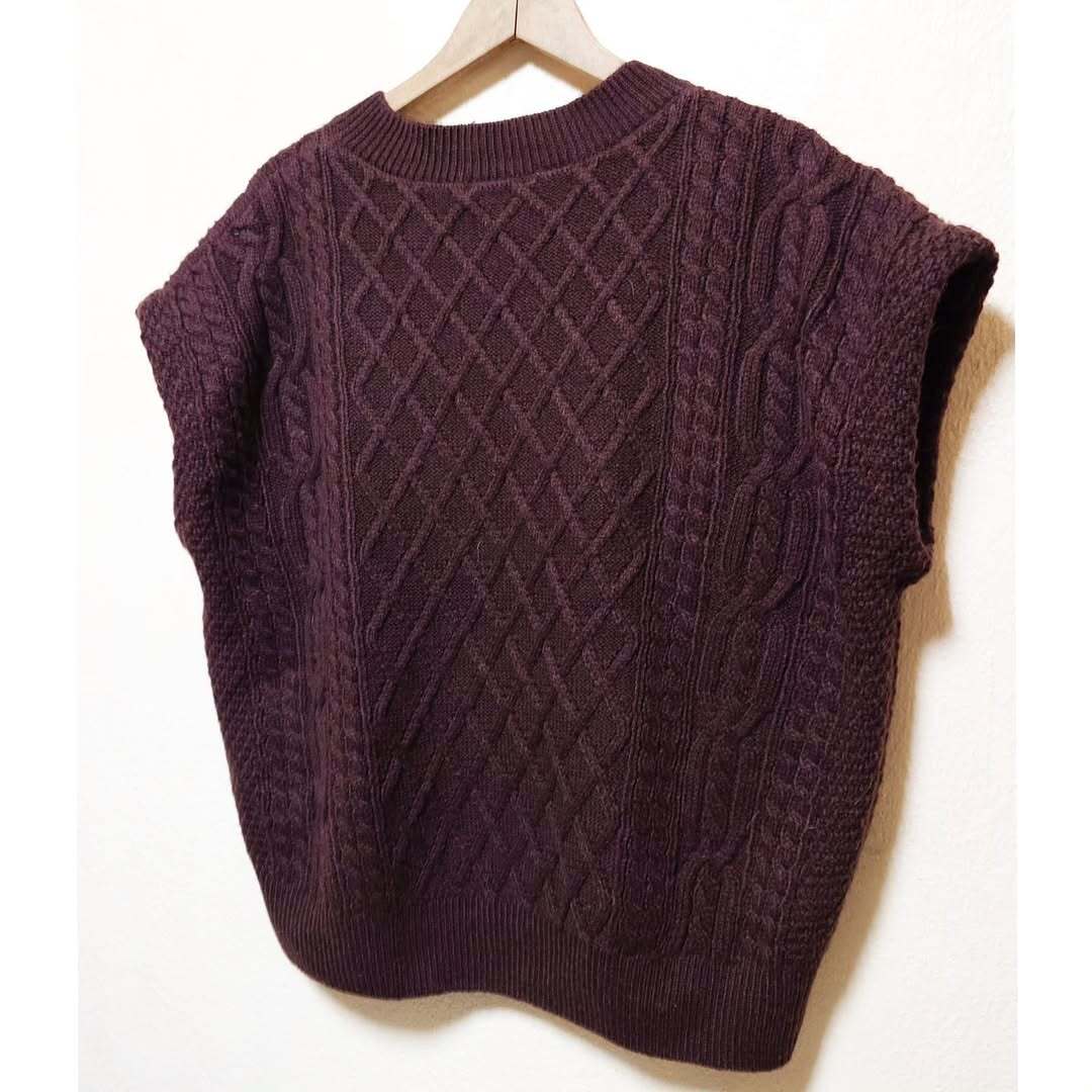 ヴィンテージのニットをベストにリメイクし、存在感のあるファーをつけ、個性的でおしゃれなデザインに。