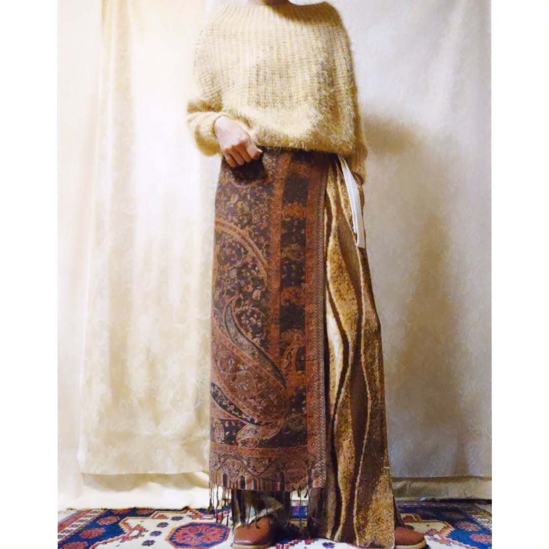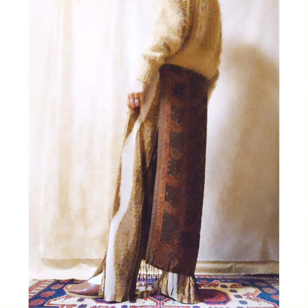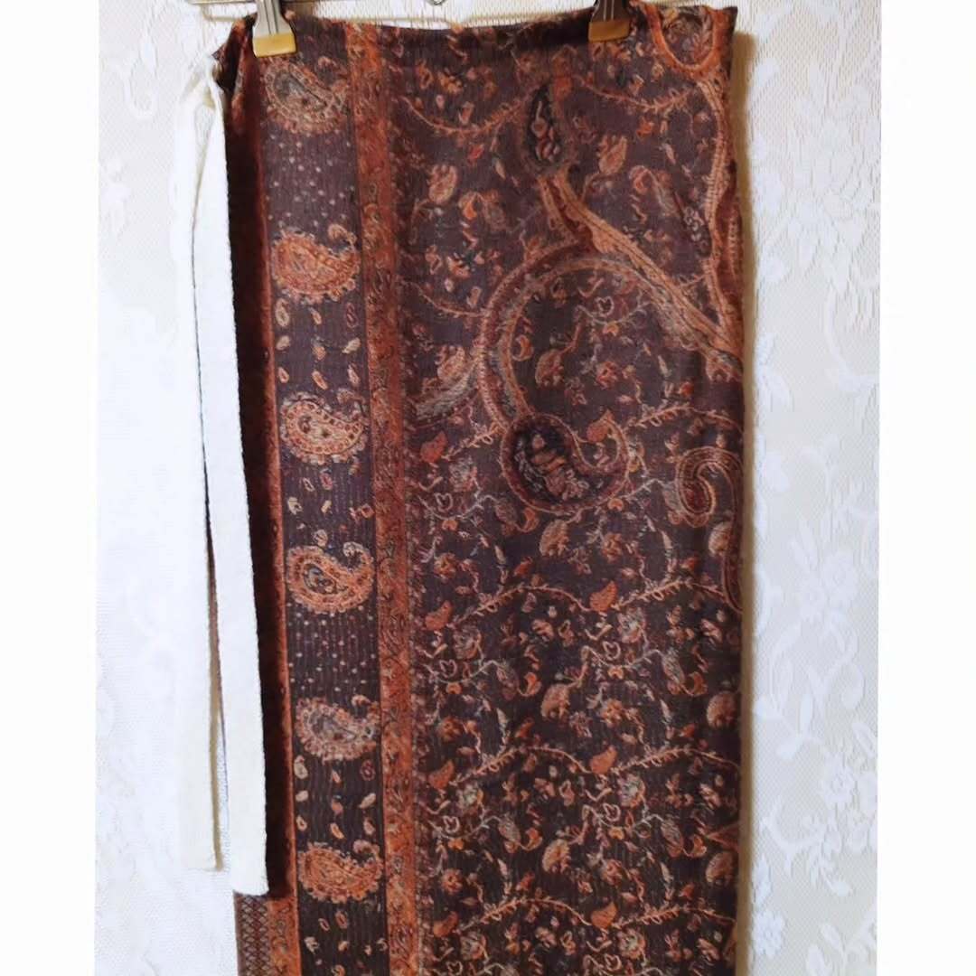 ヴィンテージのショールをラップスカートにリメイした、たまらなく素敵な一着です。