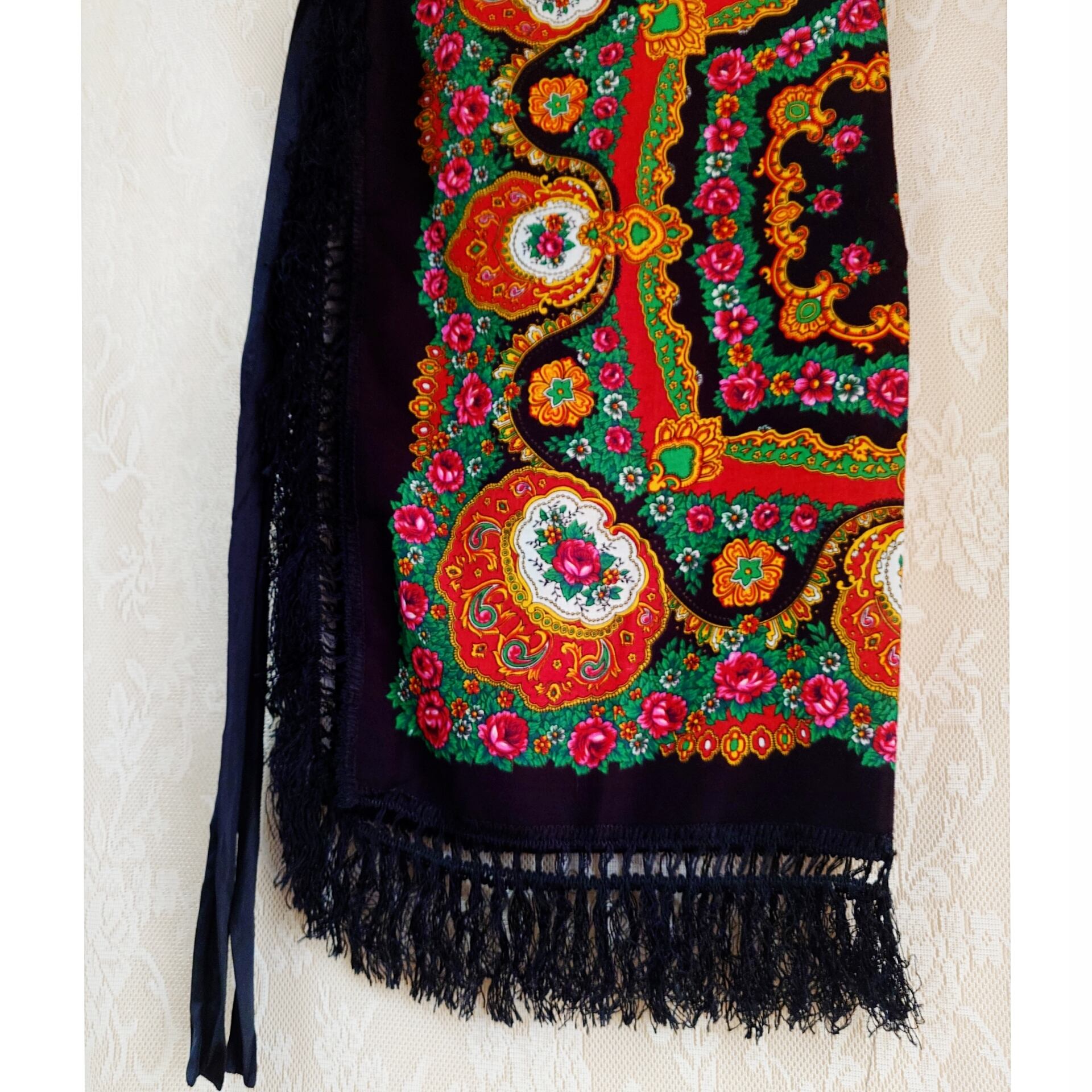 黒地に映える花柄と、雰囲気のあるフリンジの組み合わせが凄くおしゃれです。