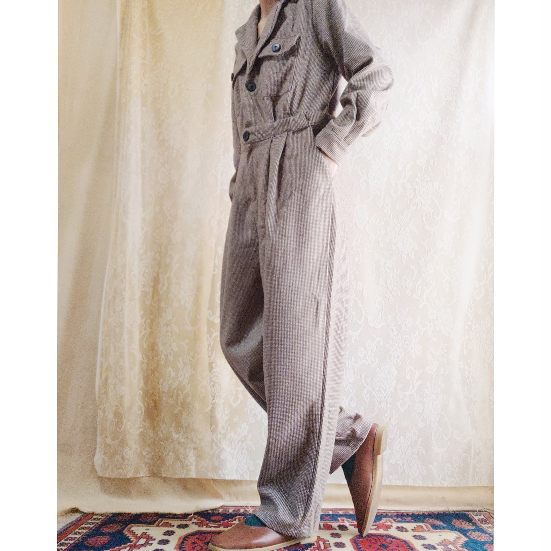 細かいグレンチェック柄が入った、とても素敵なヴィンテージのオールインワンです。