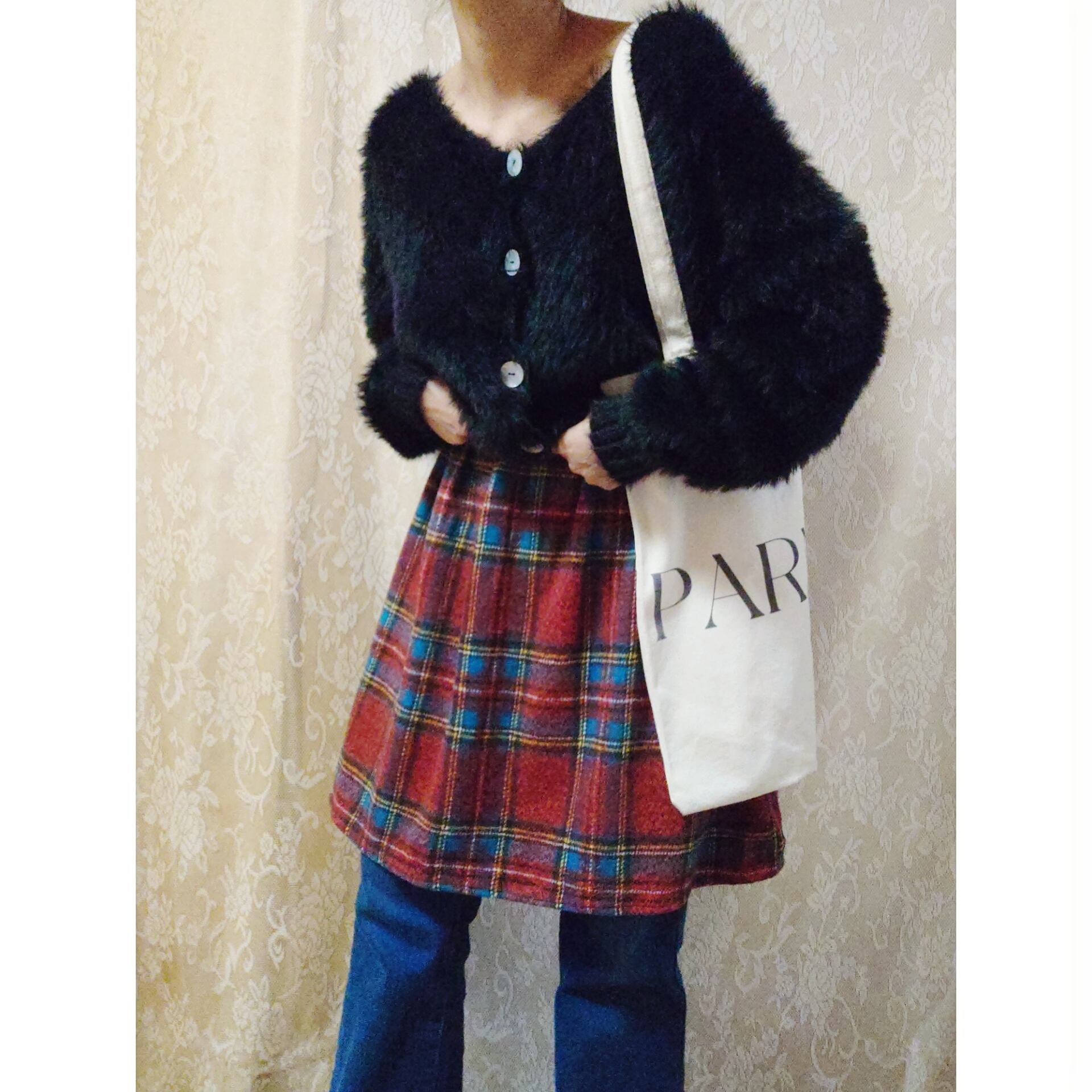タータンチェック柄がとても可愛い、ヴィンテージのウールスカートです。