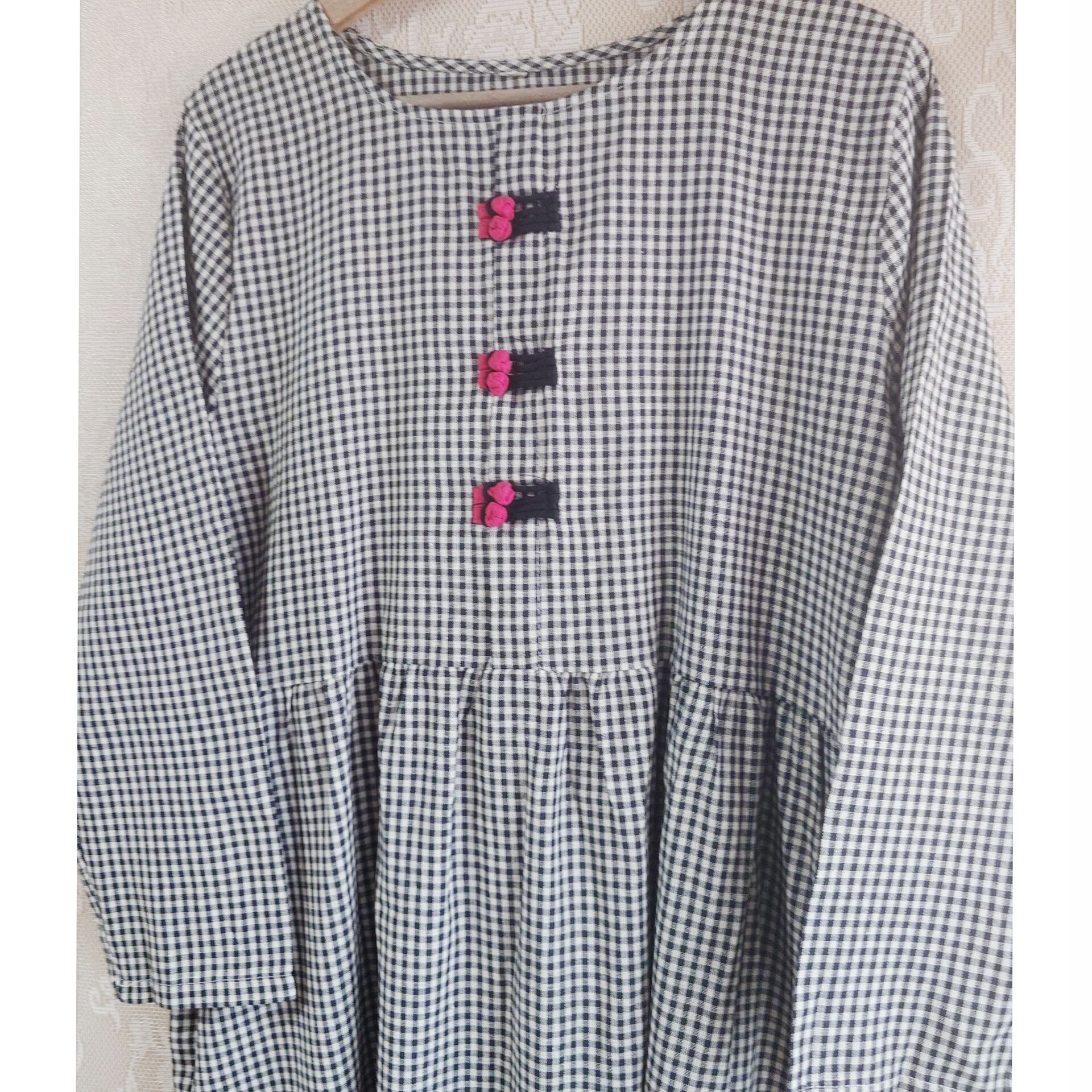 胸元はチャイナボタンデザインになっていて、ギンガムチェック柄との、アンバランス感が凄くおしゃれです。