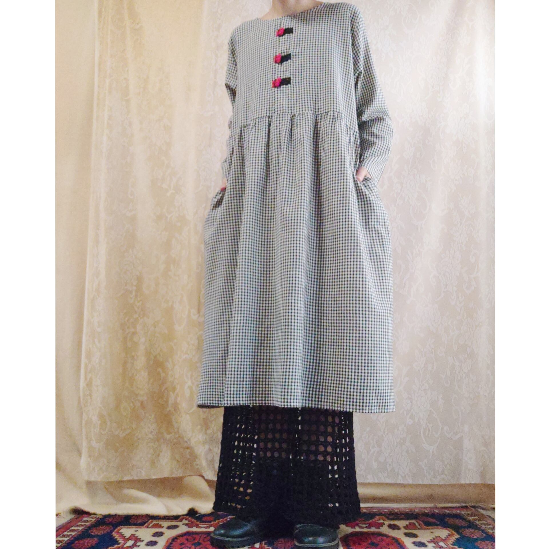 ギンガムチェック柄のとても可愛い、ヴィンテージのワンピースです。