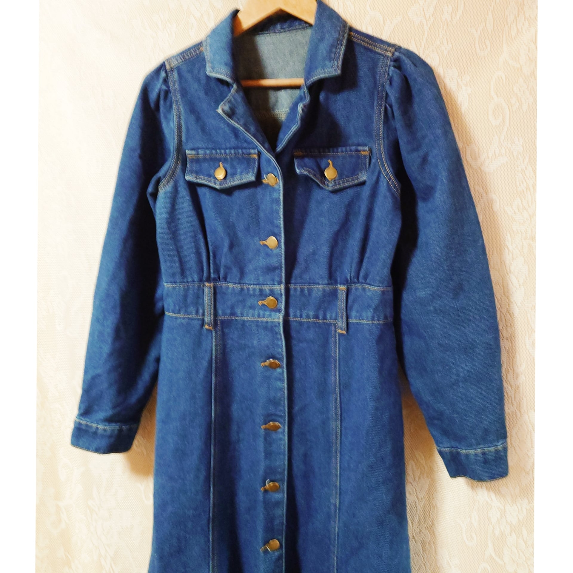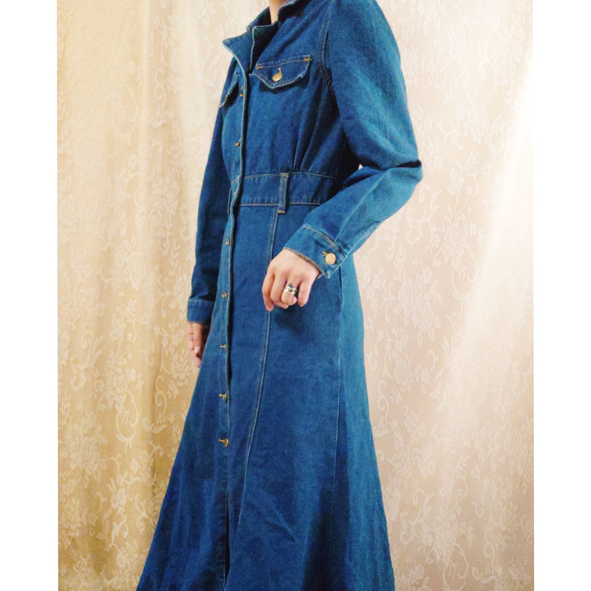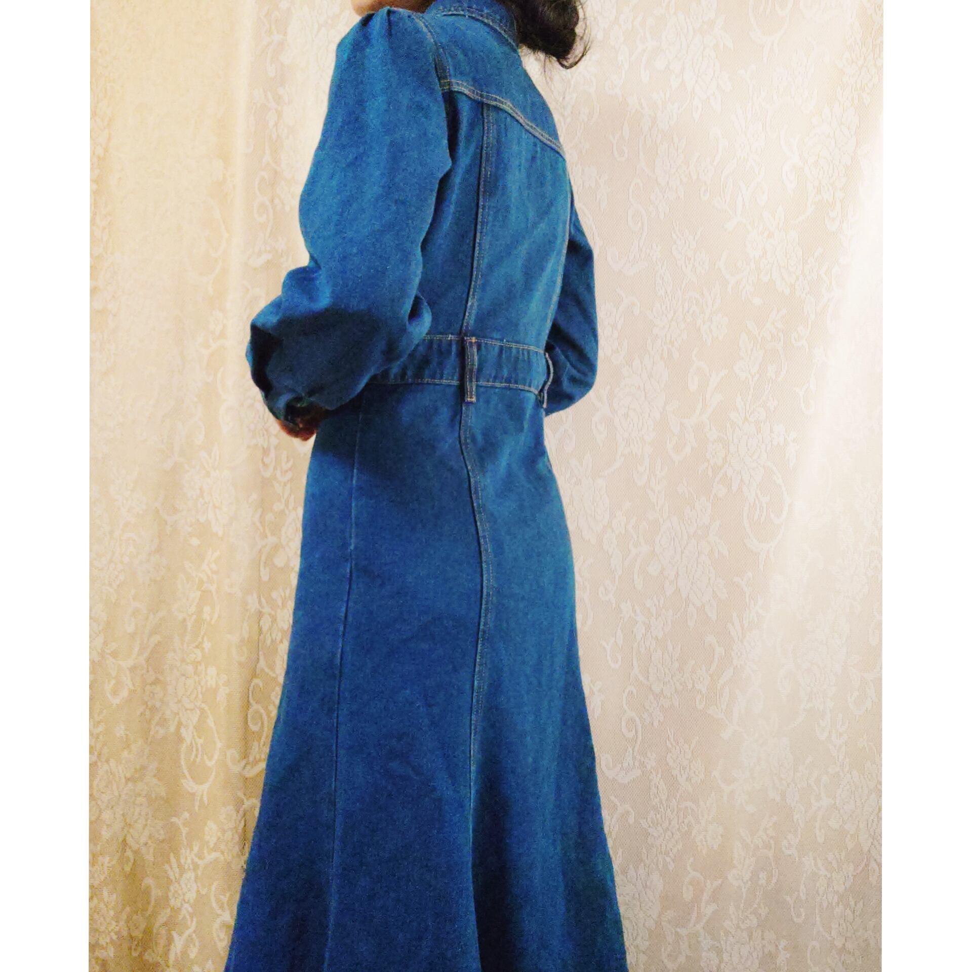 デザインやシルエットがとてもおしゃれな、ヴィンテージのデニムワンピースです。