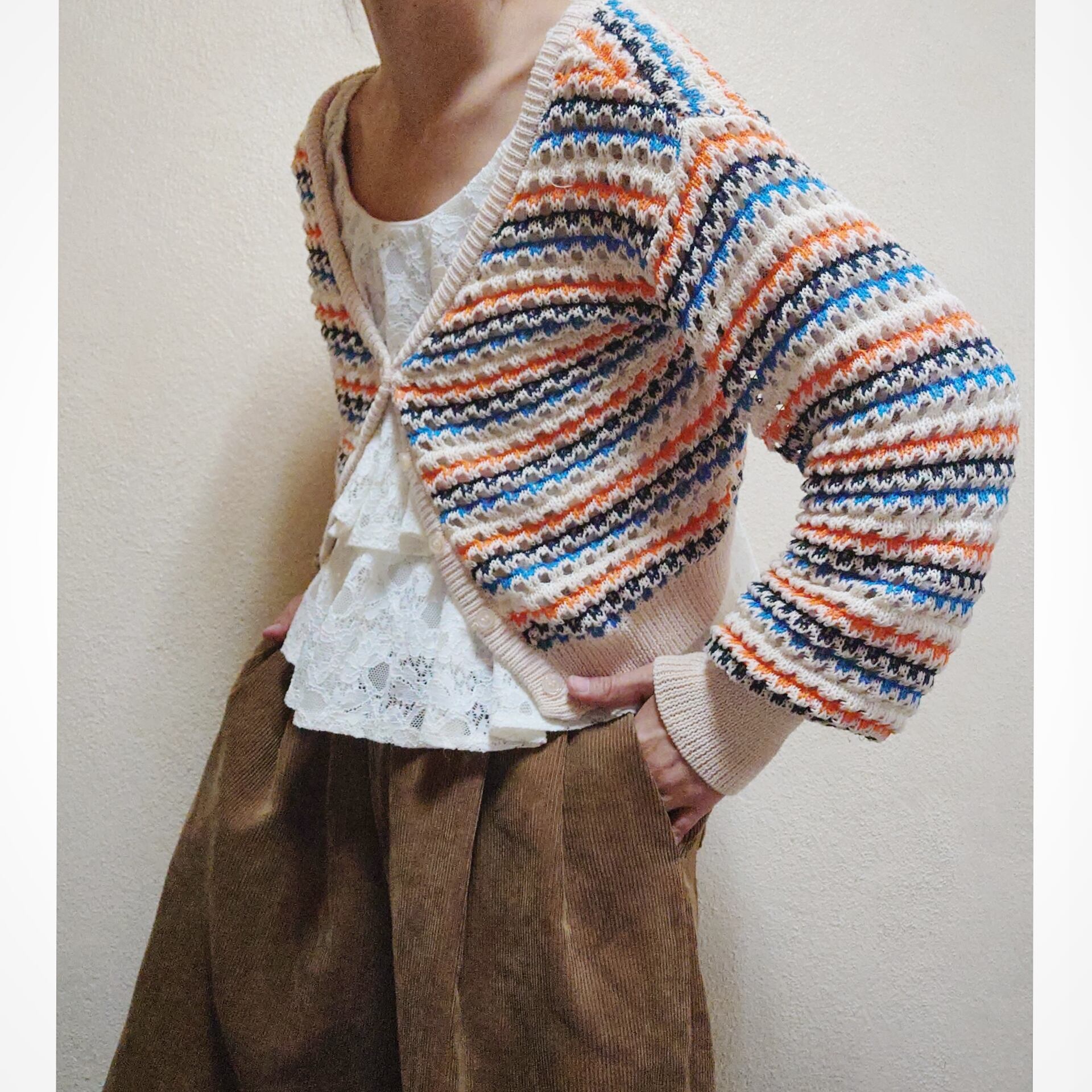 ボーダー柄が目を惹く、とても可愛いヴィンテージのカーディガンです。