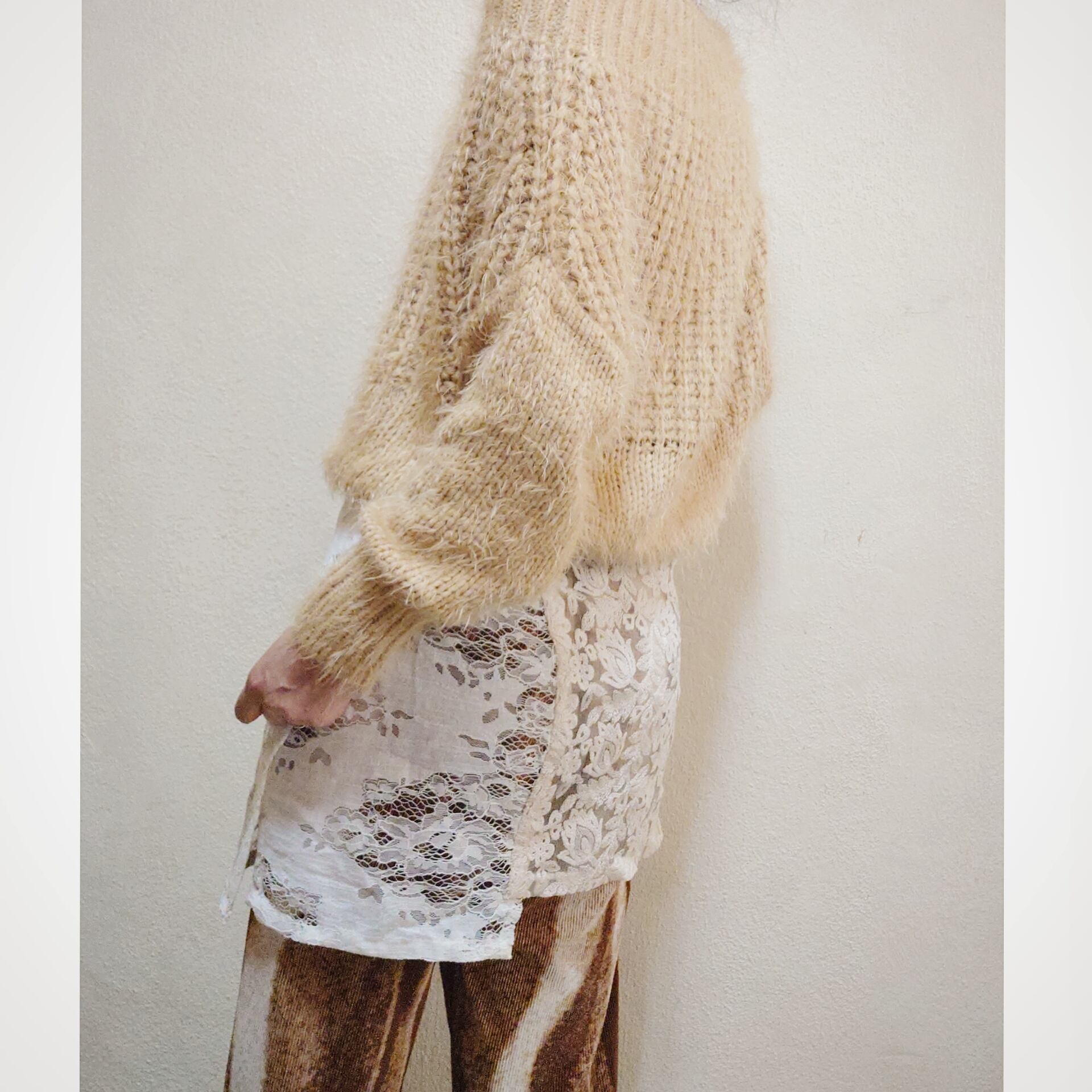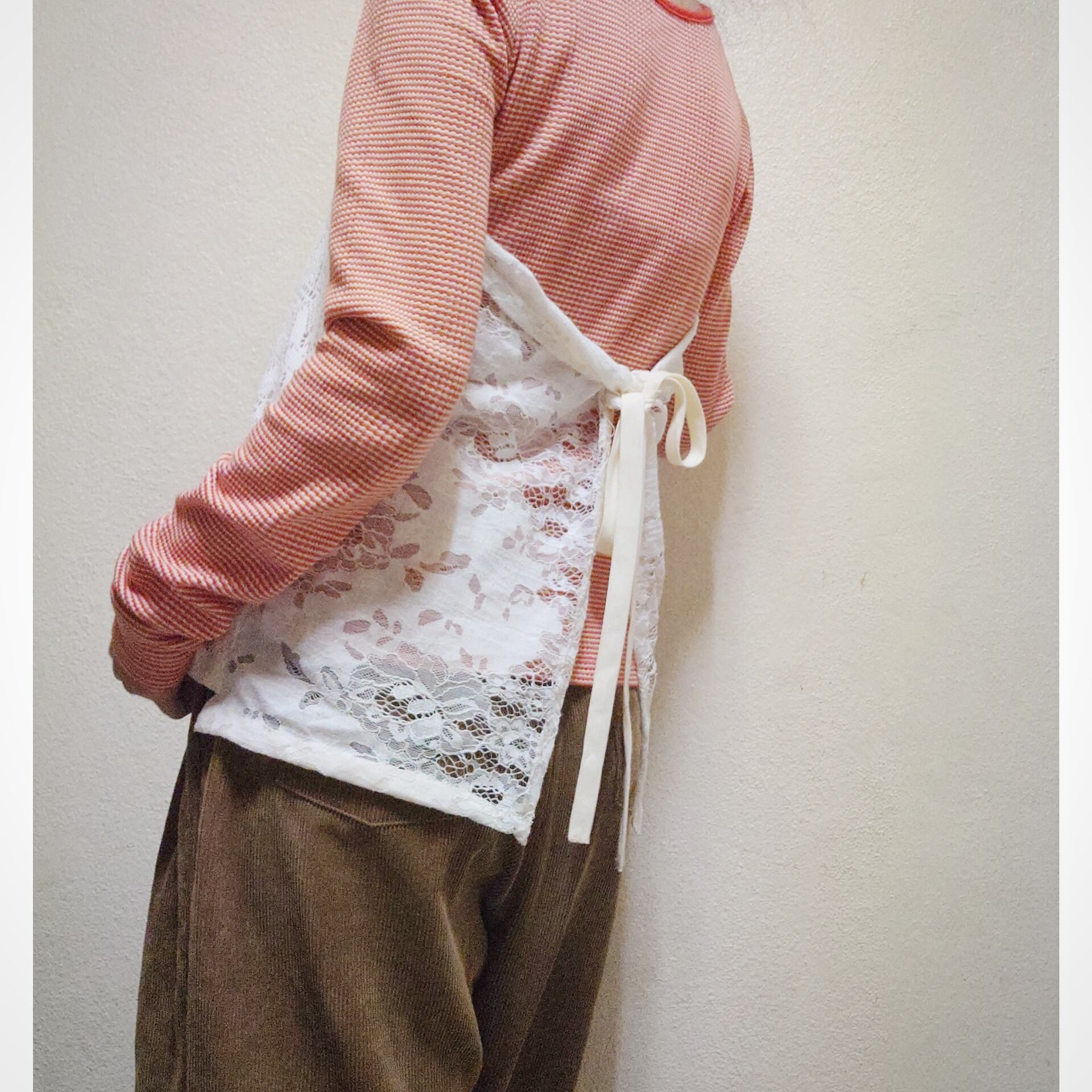 異なるレースの組み合わせにし、あえて長さも不揃いにし、つけた時のオシャレなバランス感を意識したデザインになっています。