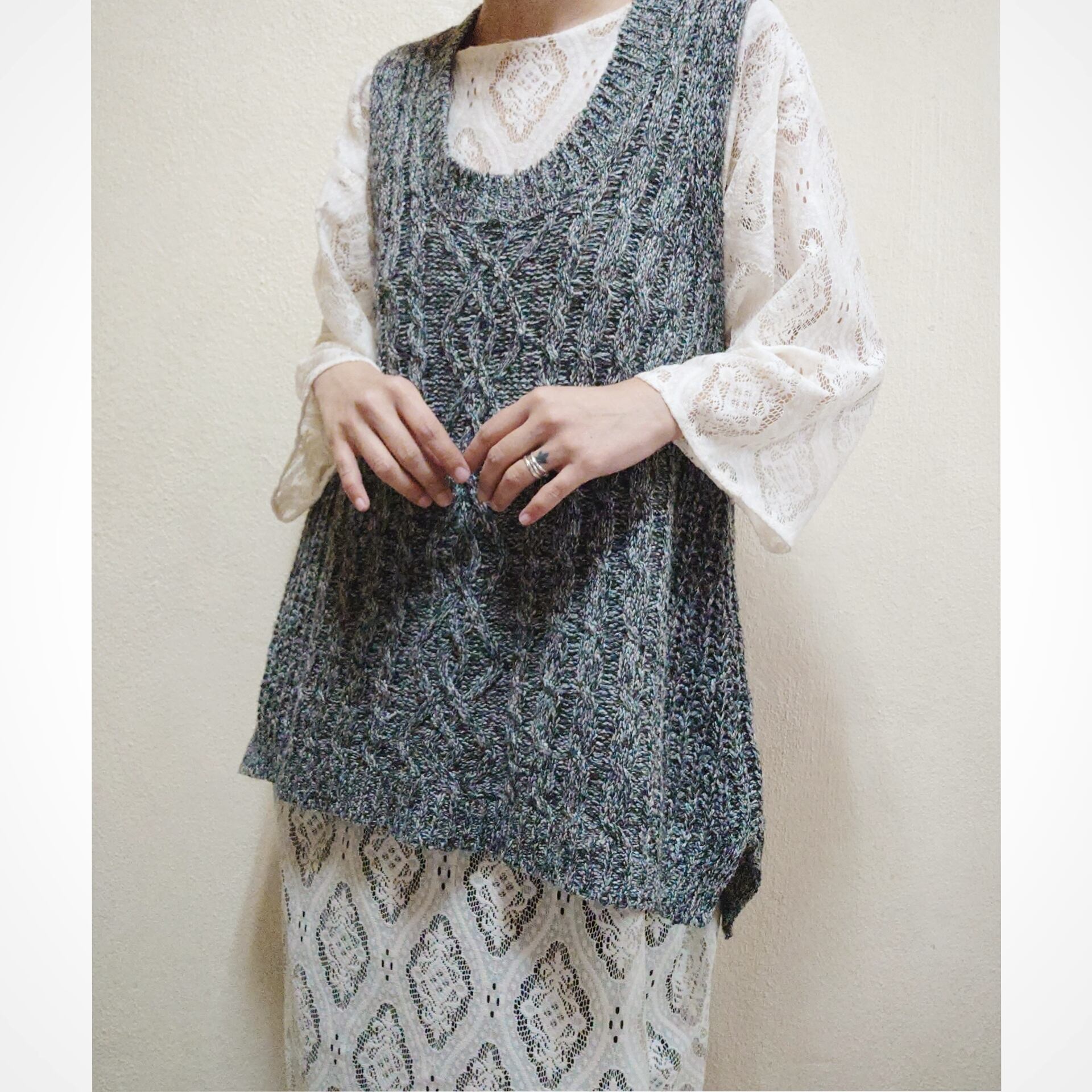 ビッグシルエットタイプのデザインが、たまらなく可愛いヴィンテージのニットベストです。