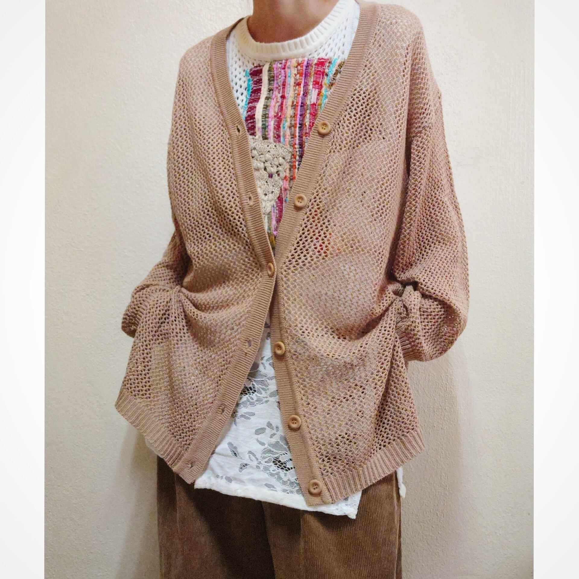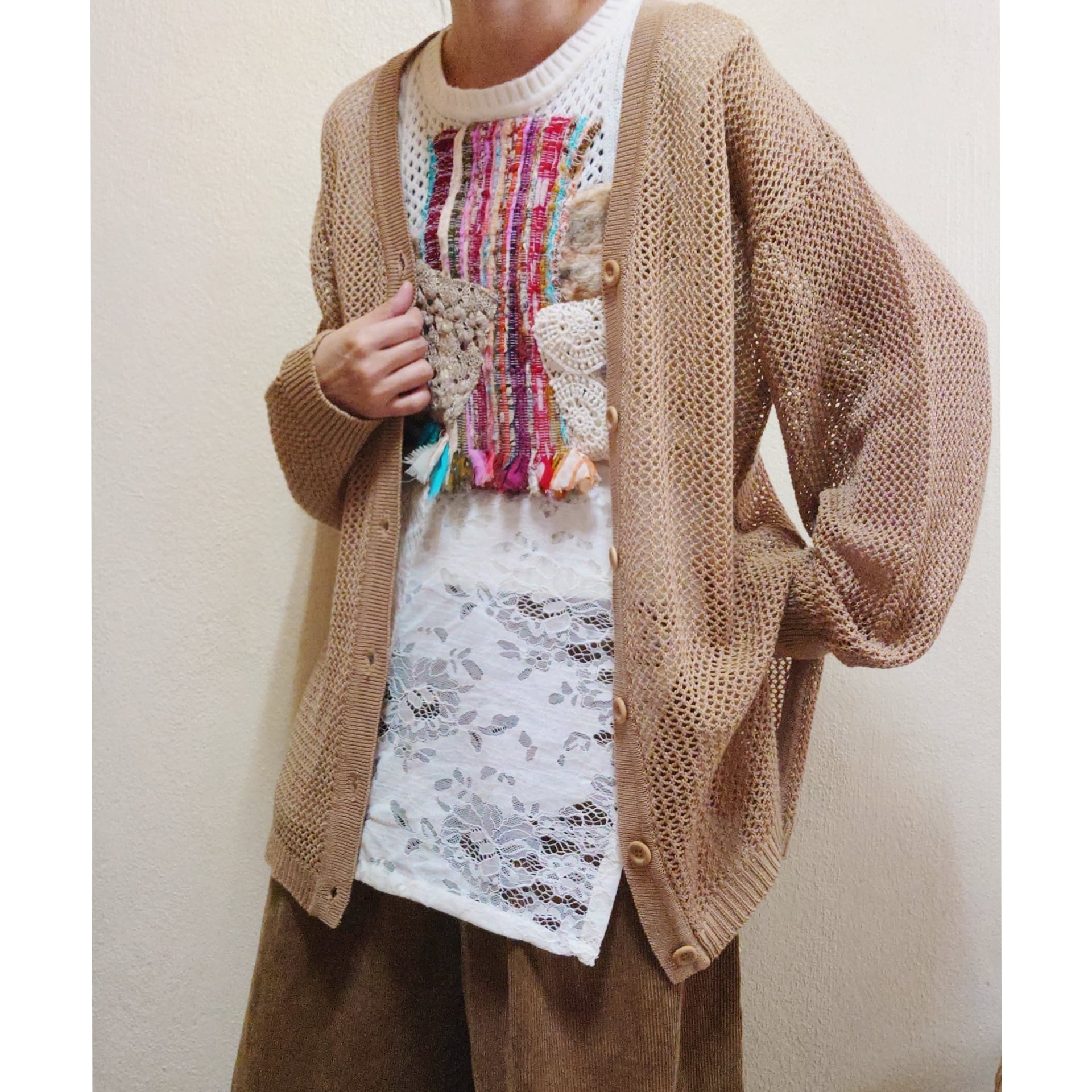 フィッシュネットデザインがとてもおしゃれな、ヴィンテージのカーディガンです。