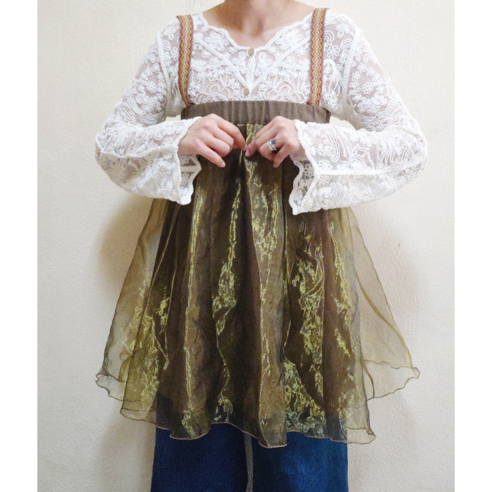 ヴィンテージのチュールスカートをトップスにリメイクした、個性的でおしゃれな一着です。