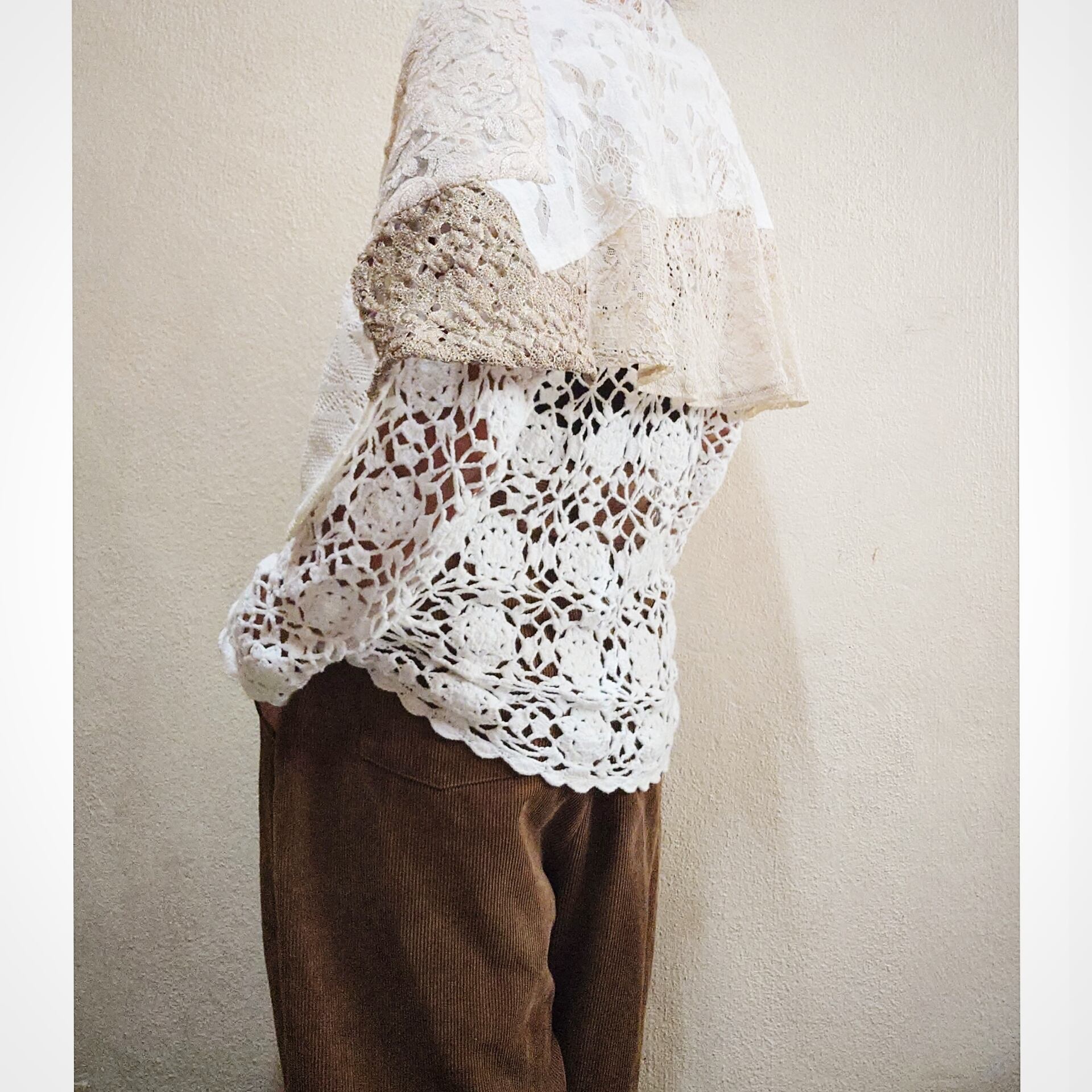 異なるタイプのレースをパッチワークのように繋ぎ合わせ、どの角度から見ても可愛い見えるようにデザインしました。