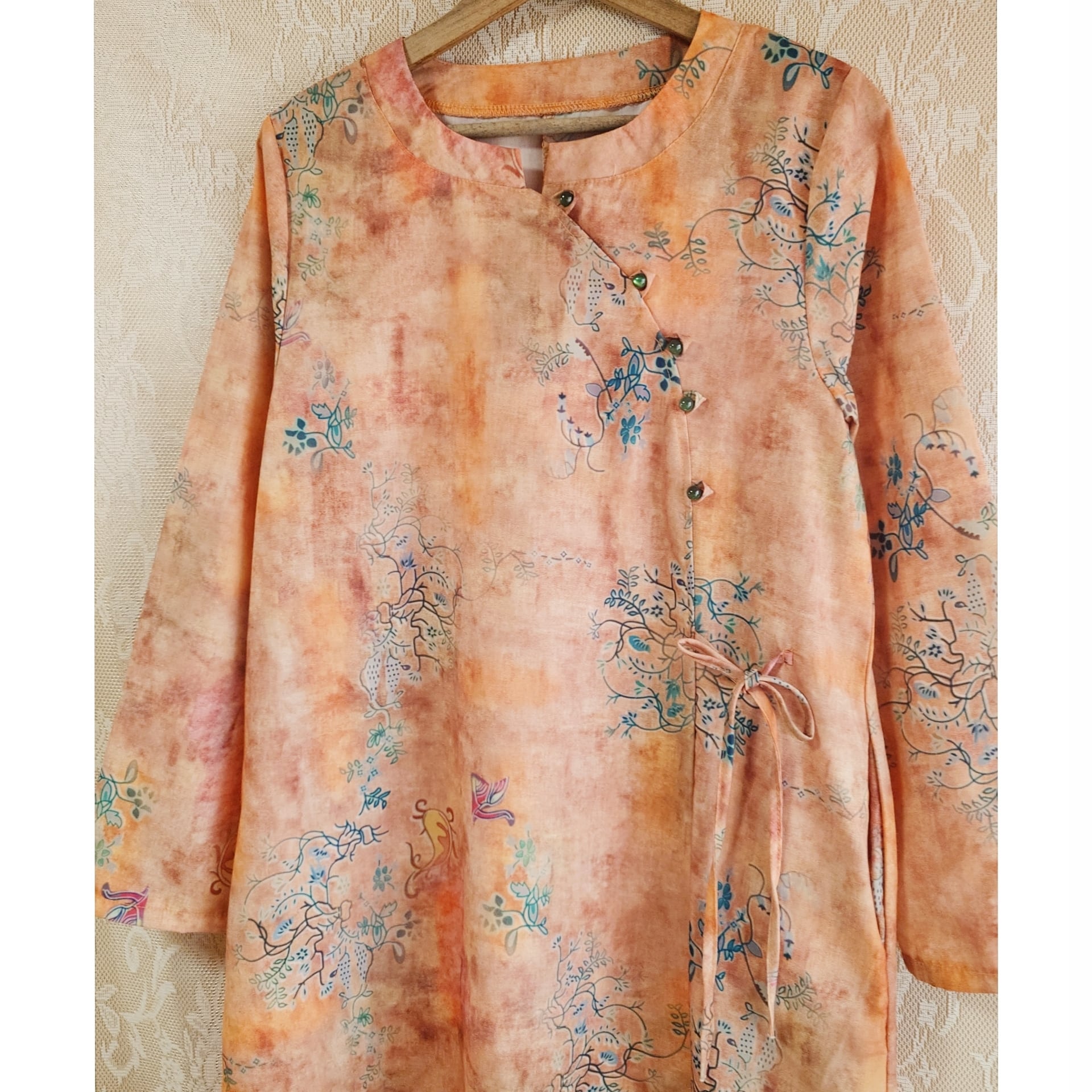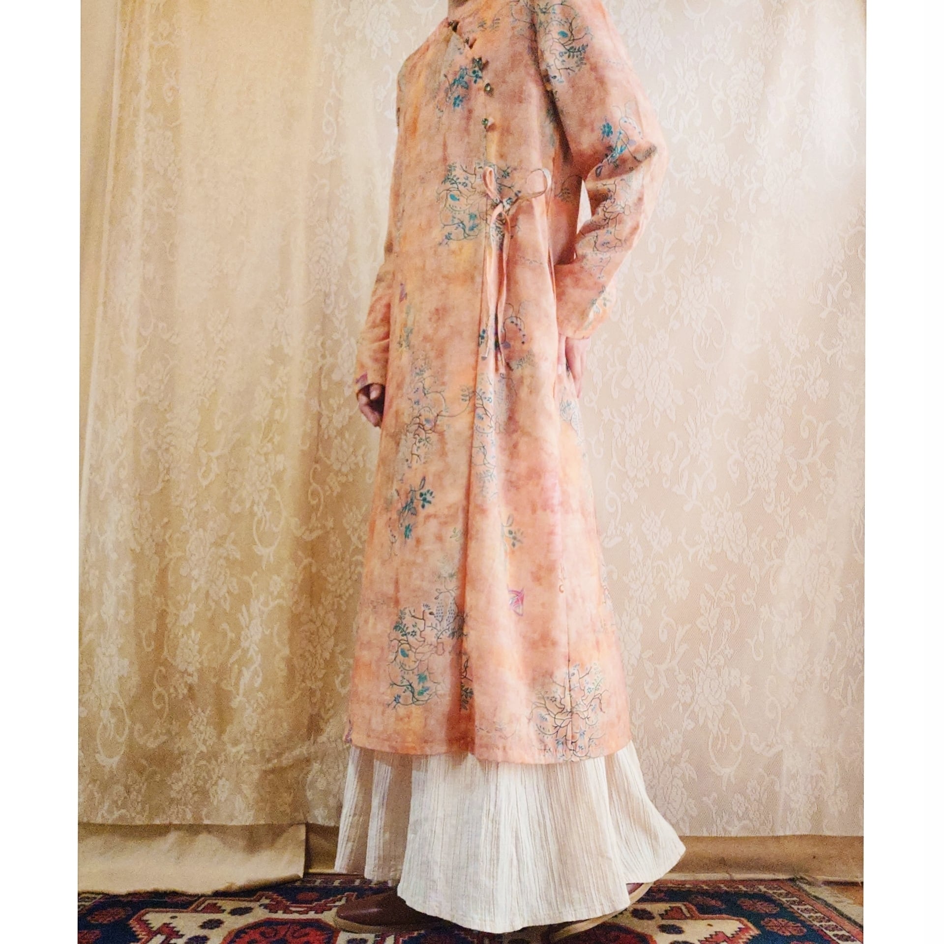 エスニックテイストなデザインと、オリエンタルな柄がたまらなく素敵な、ヴィンテージのワンピースです。