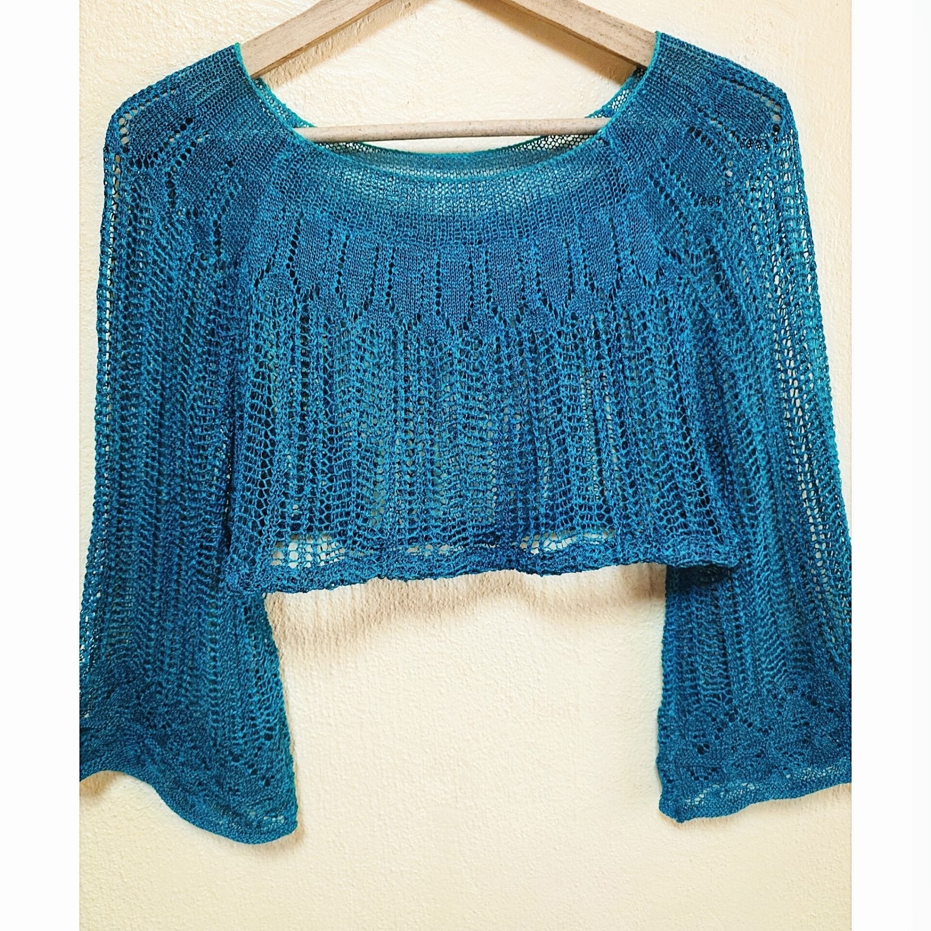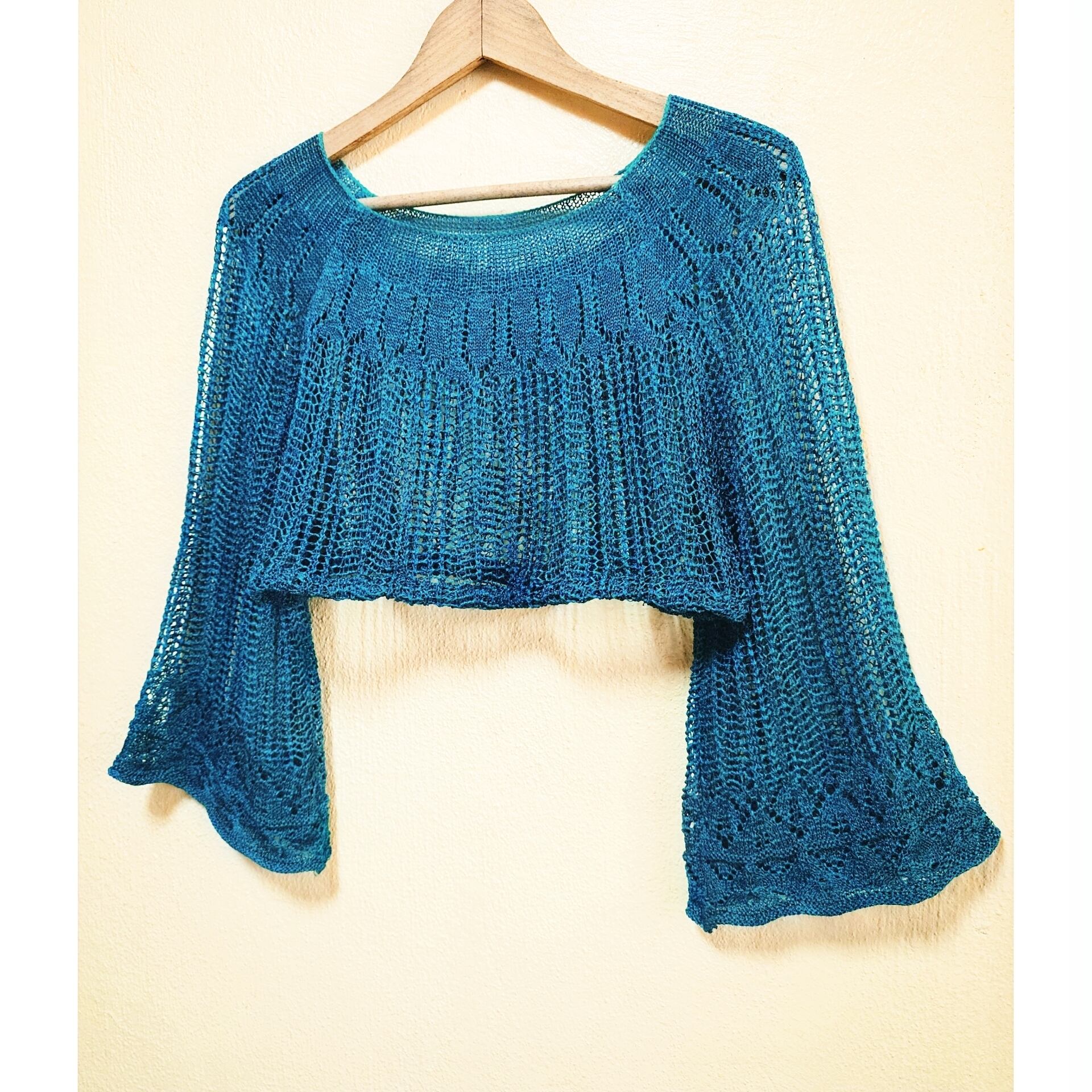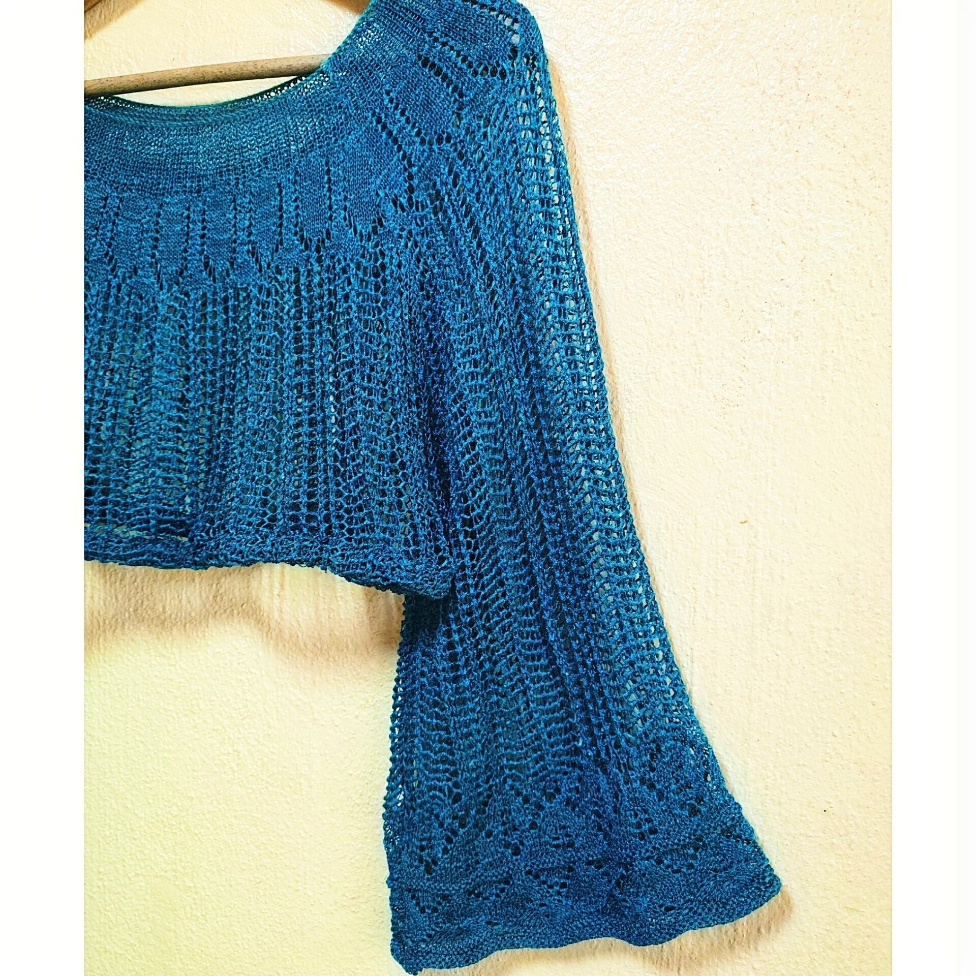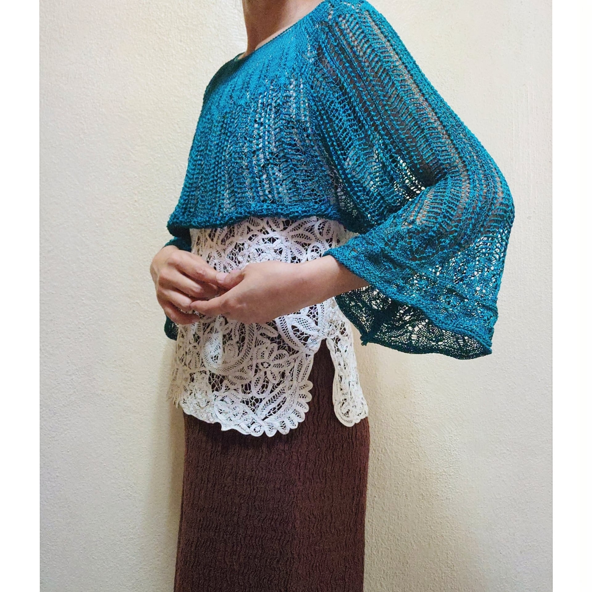 目を惹くようなターコイズブルー系カラーがたまらなく素敵な、ヴィンテージのレーヨンニットです。