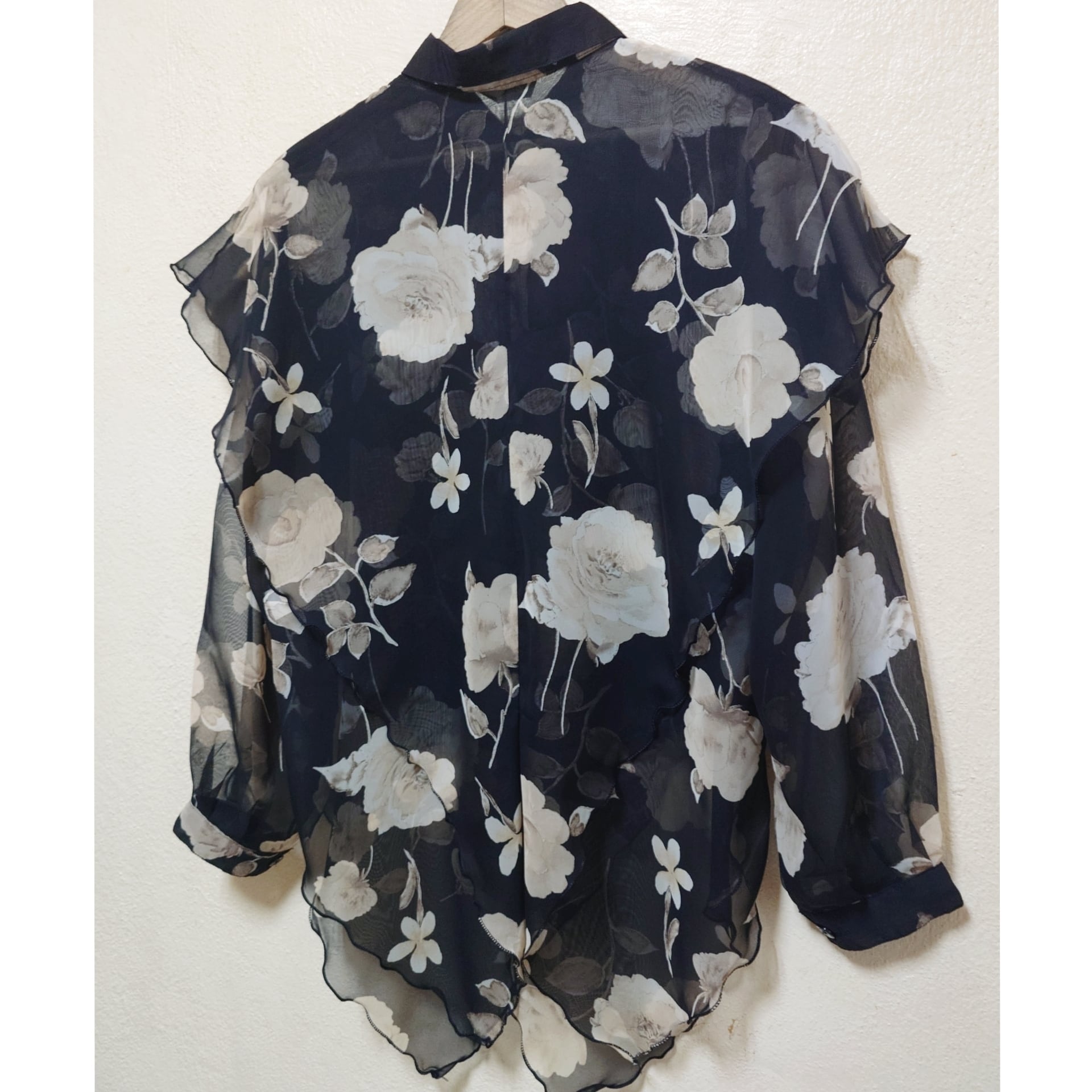 雰囲気のある花柄と、存在感のあるフリルカラーデザインがたまらなく素敵な、ヴィンテージのシャツです。