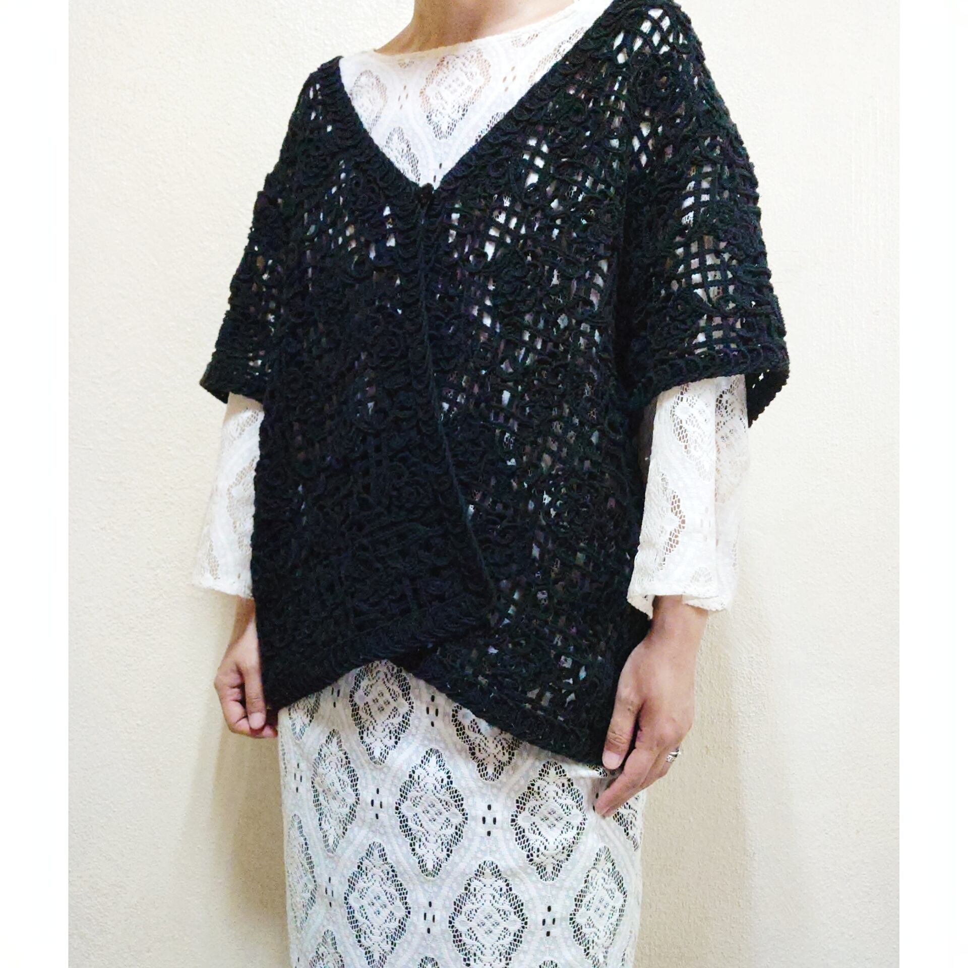 ビッグシルエットと、クロシェ編みがたまらなく素敵なヴィンテージのニットベストです。