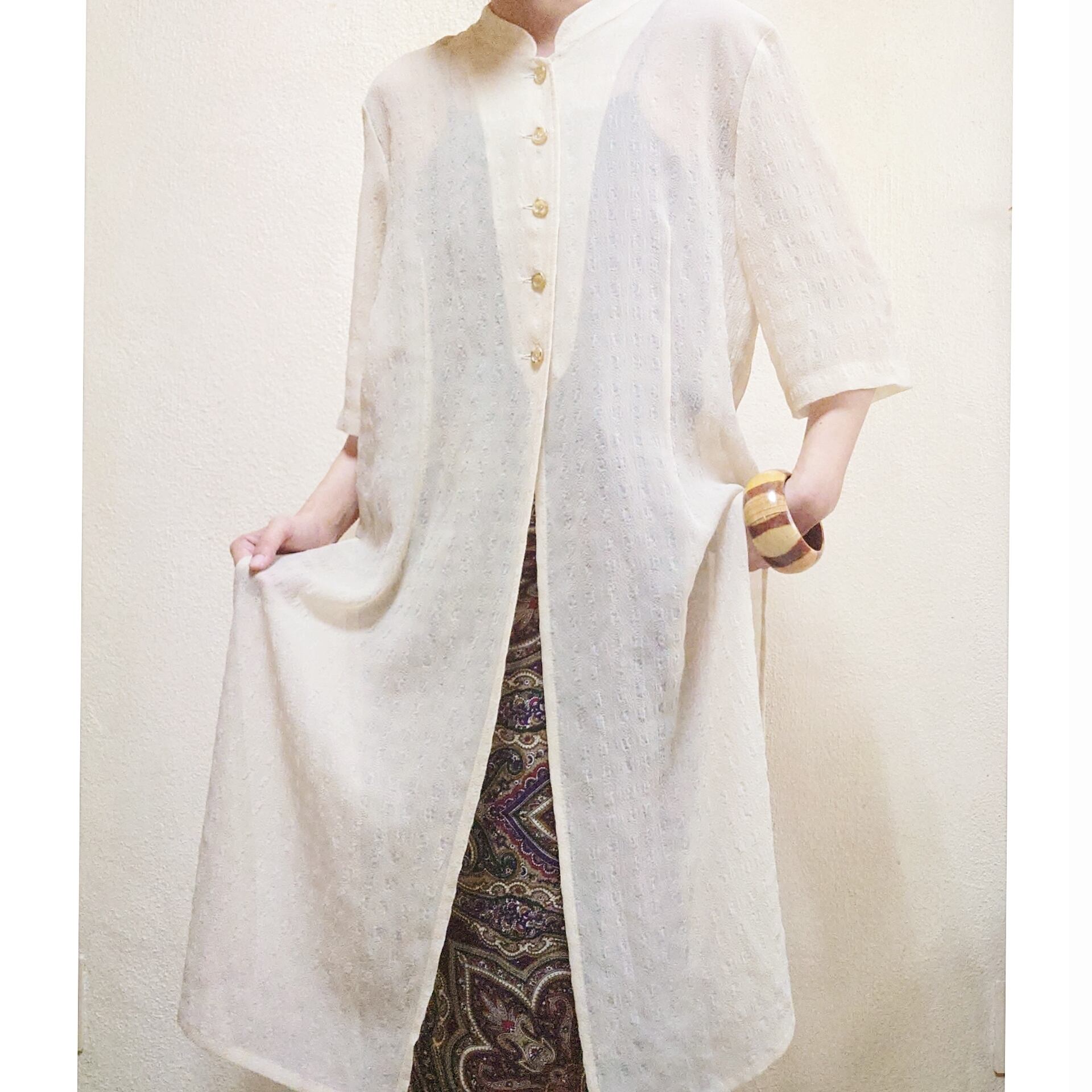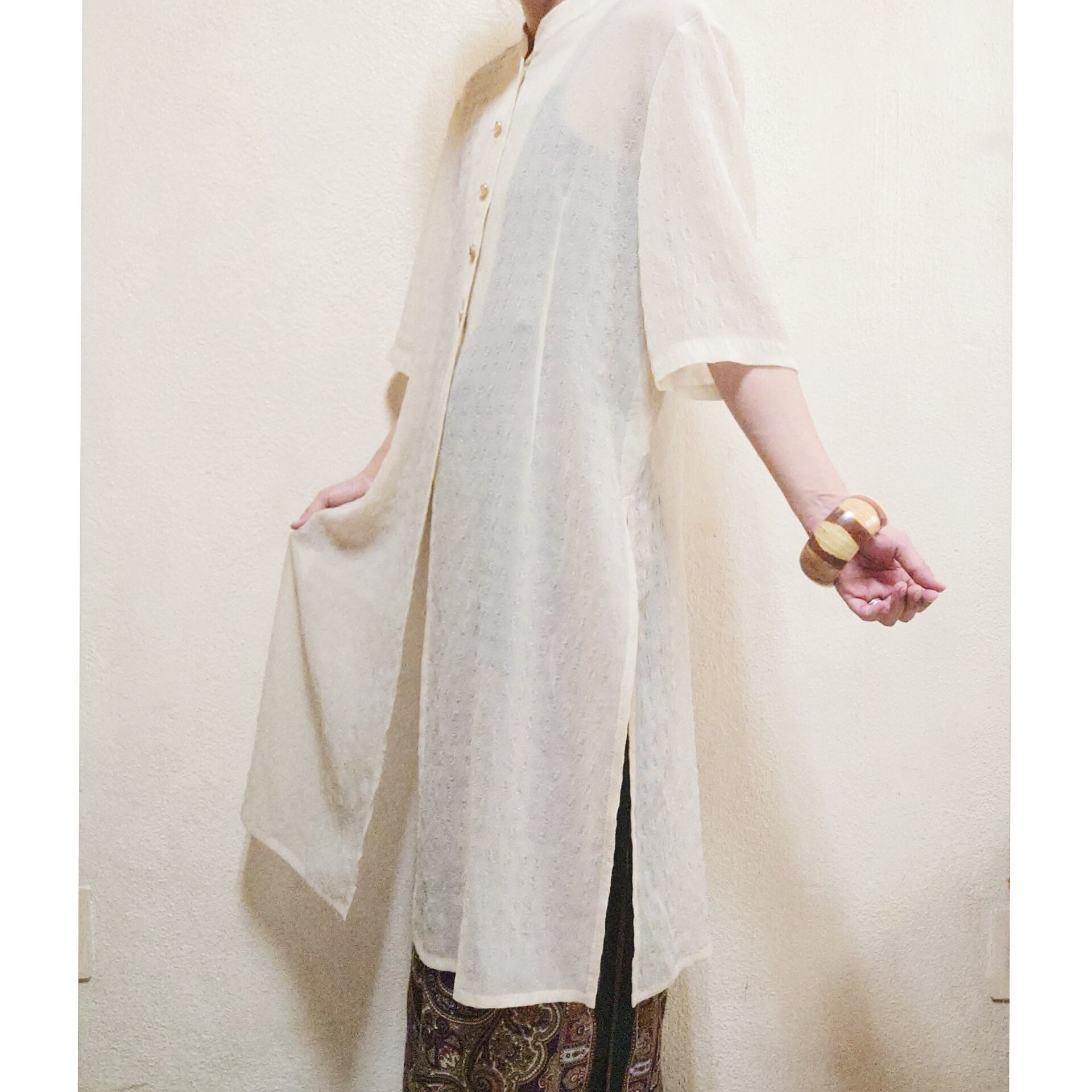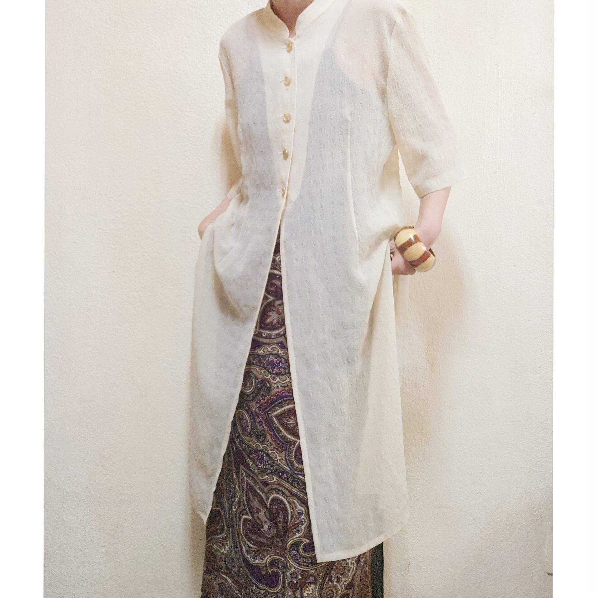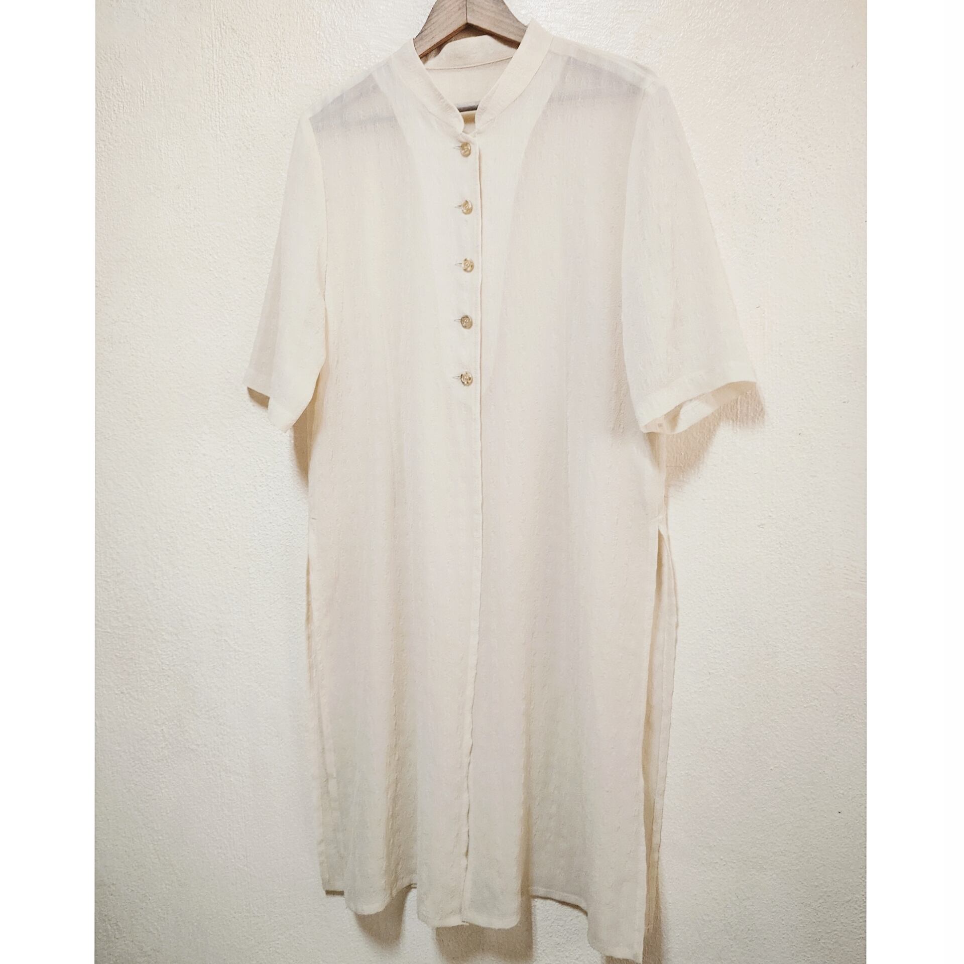 スタンドカラーデザインがとてもおしゃれな、ヴィンテージのシャツワンピです。