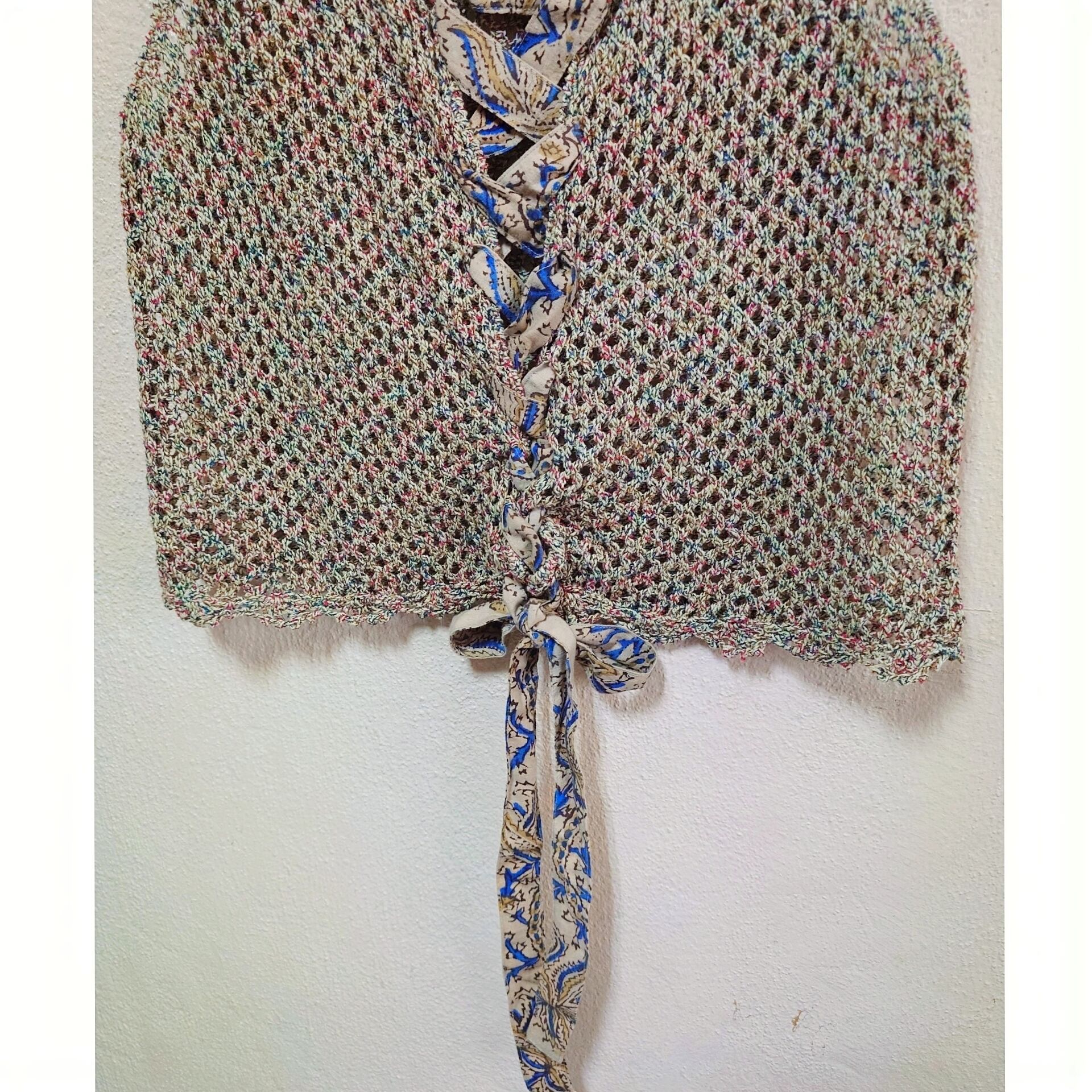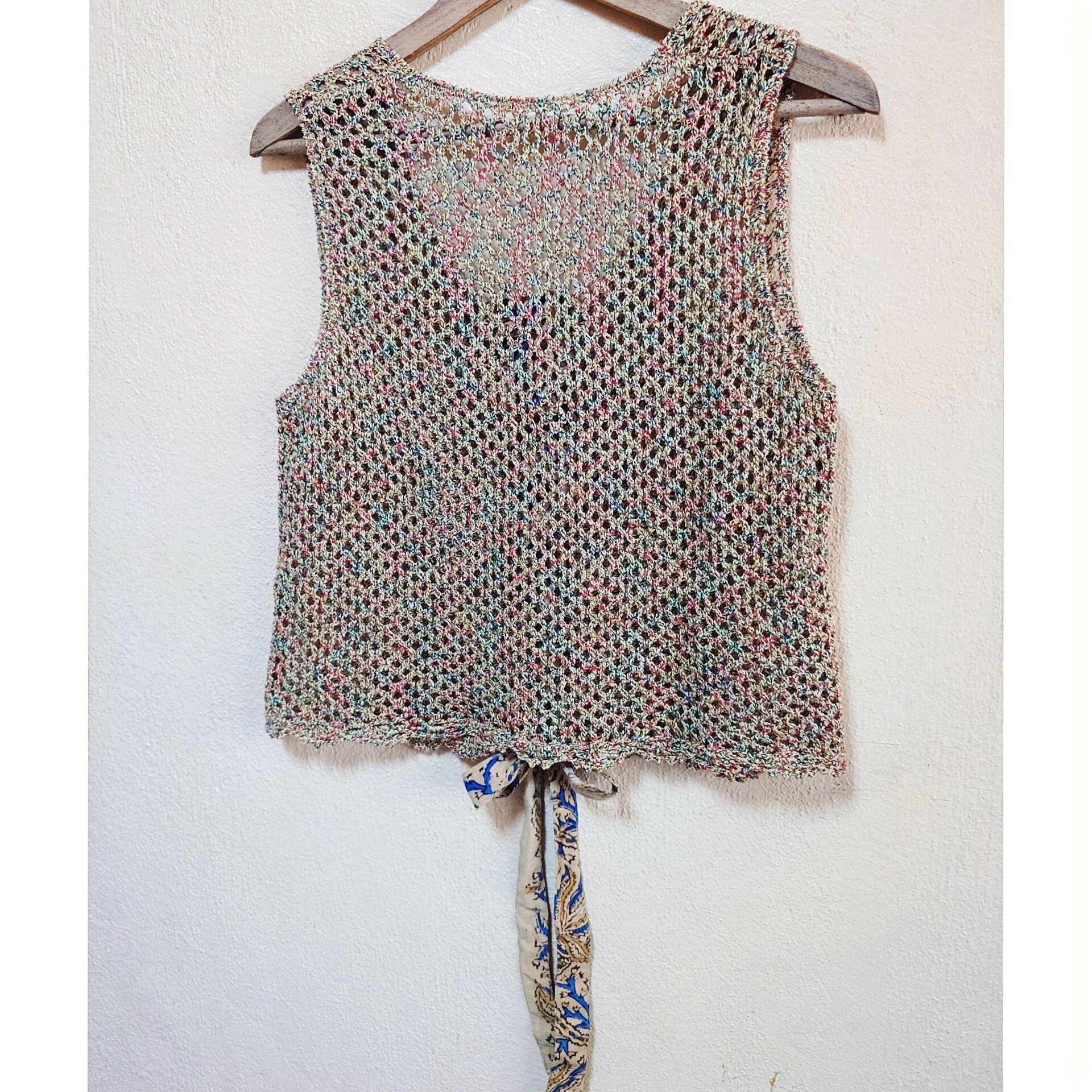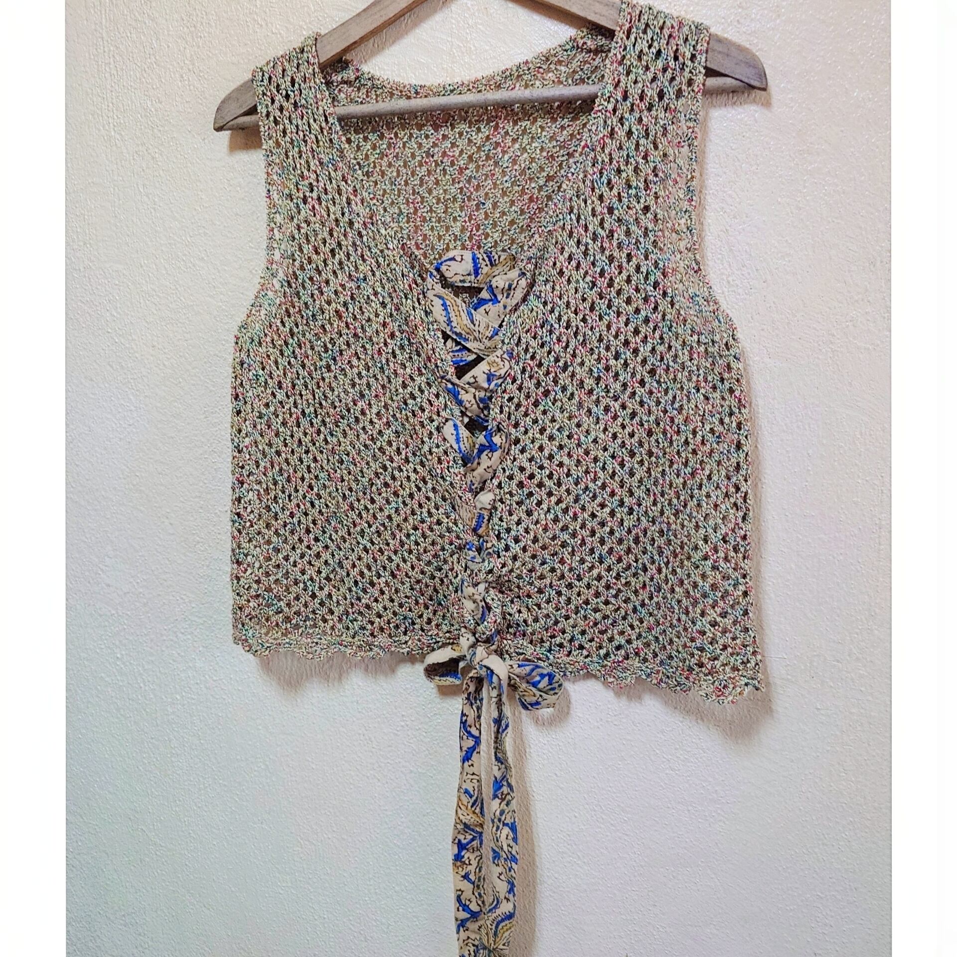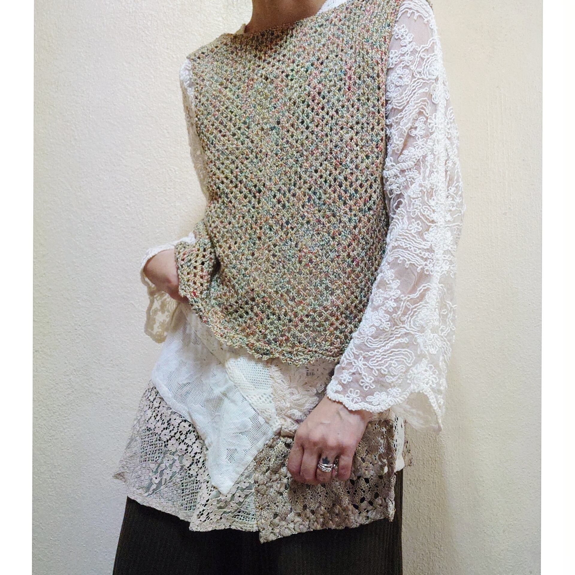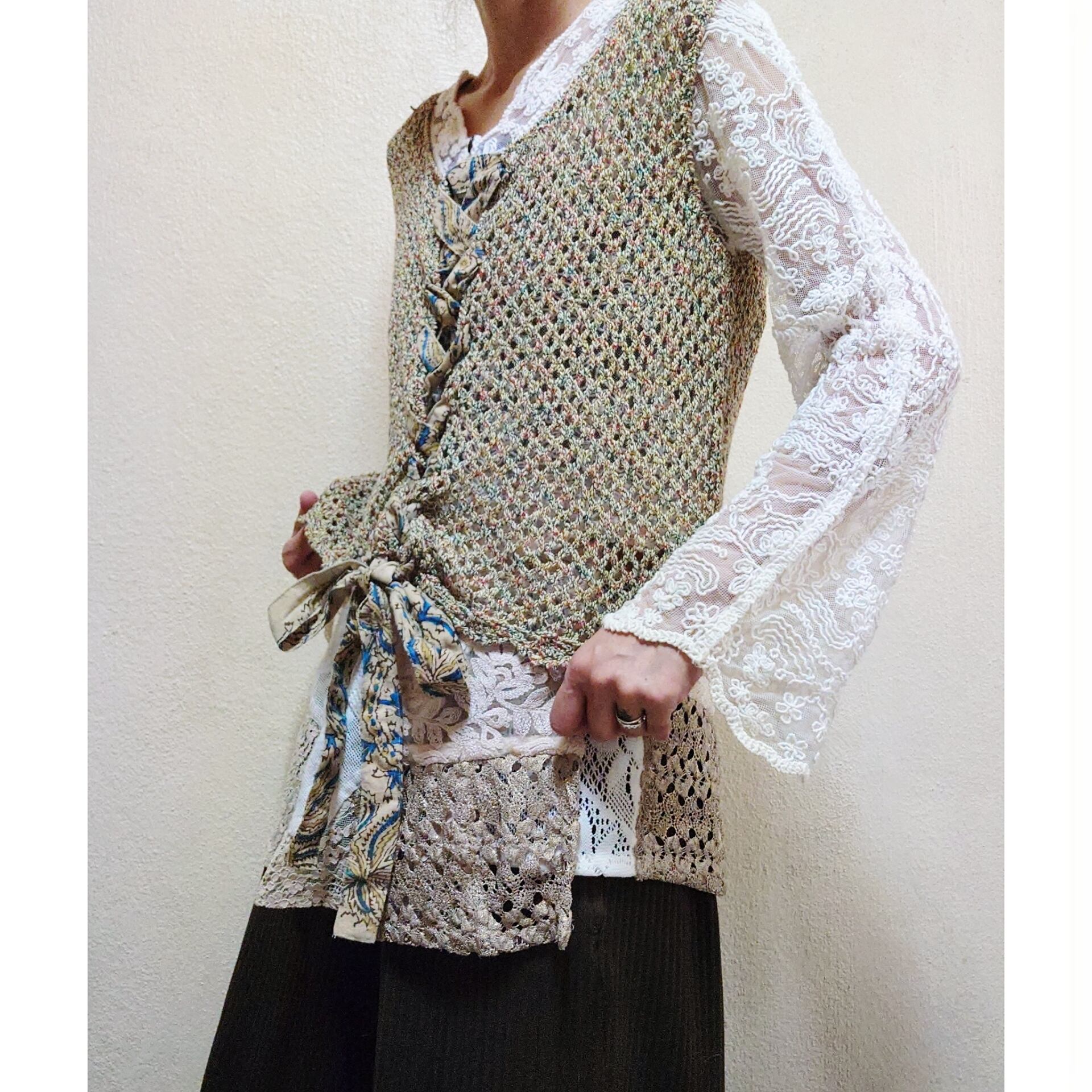 ヴィンテージのコットンニットベストをリメイクした、たまらなく可愛い一着です。