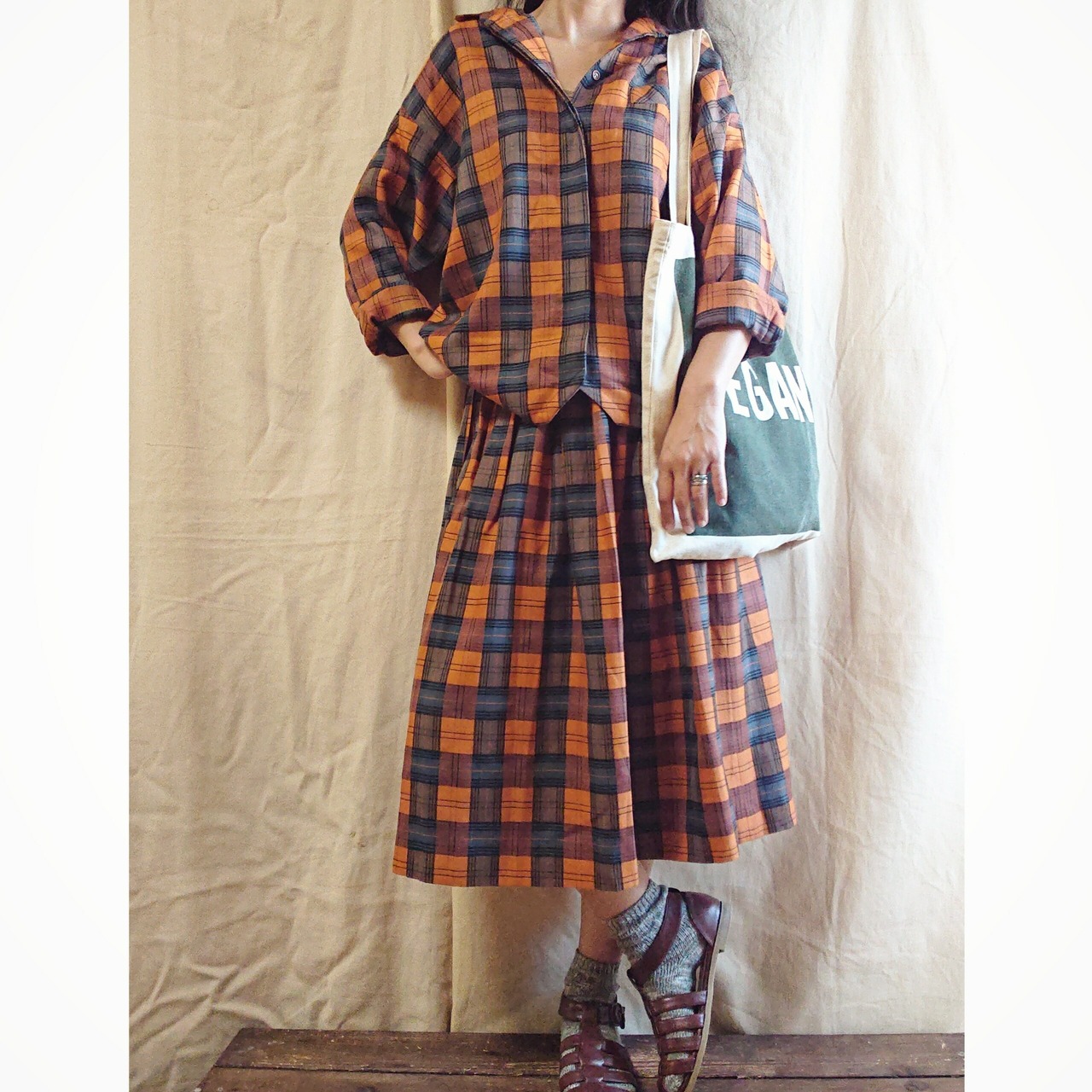 今からの時期にぴったりなチェック柄がとても可愛い、vintageのセットアップです。