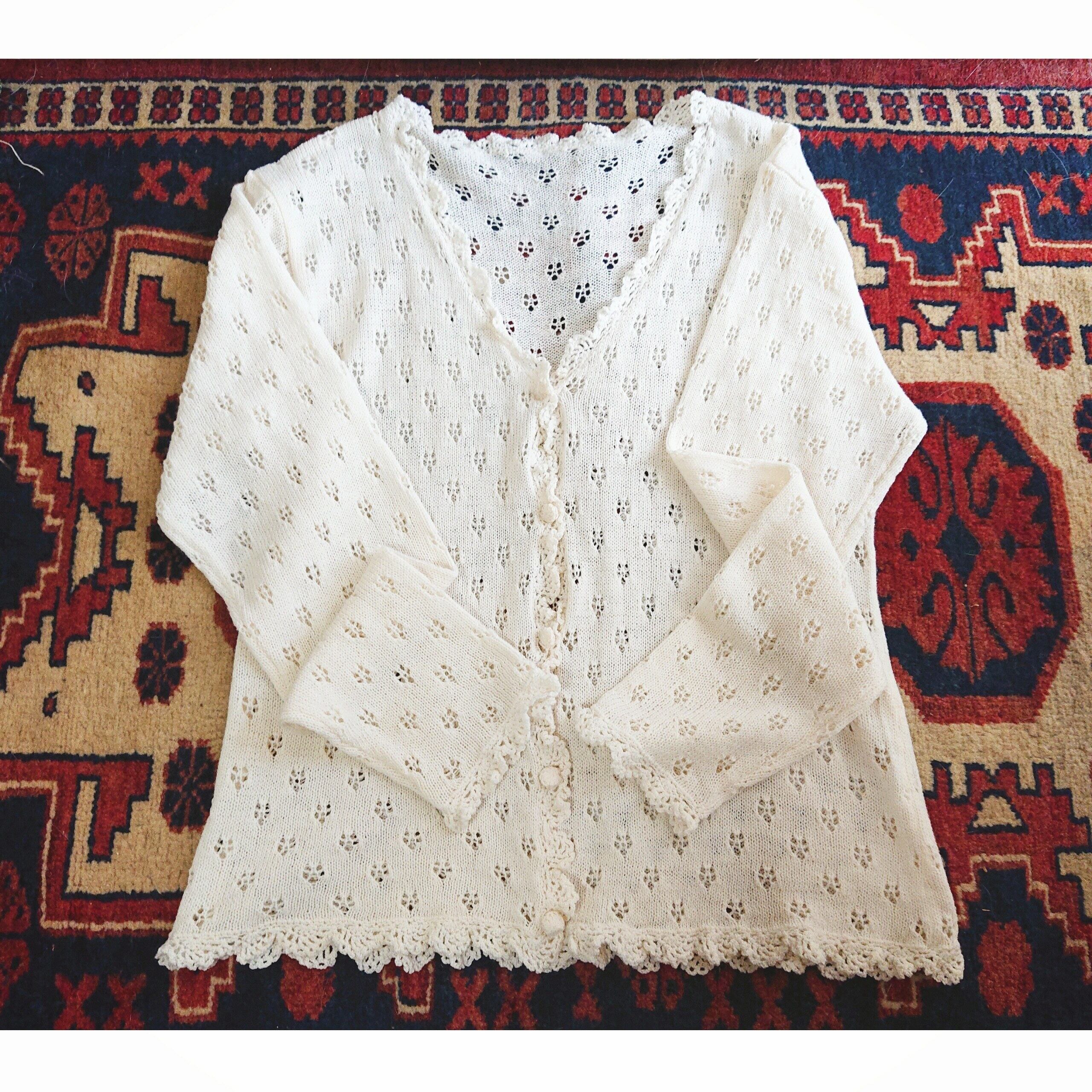 クロシェレースがたまらなく可愛い、vintageのニットカーディガンです。