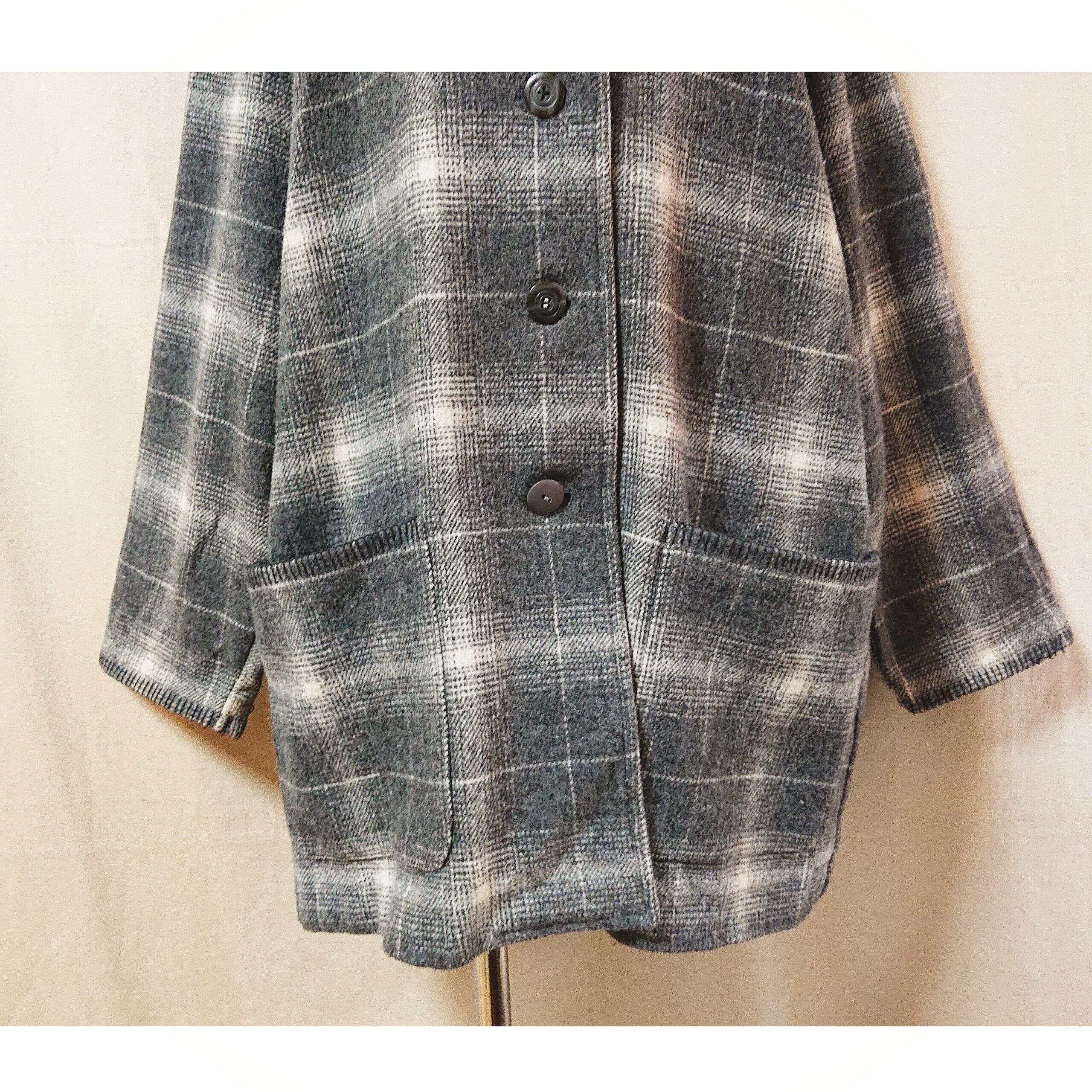 大柄タイプのチェックが、とても可愛いvintageのウールジャケットです。