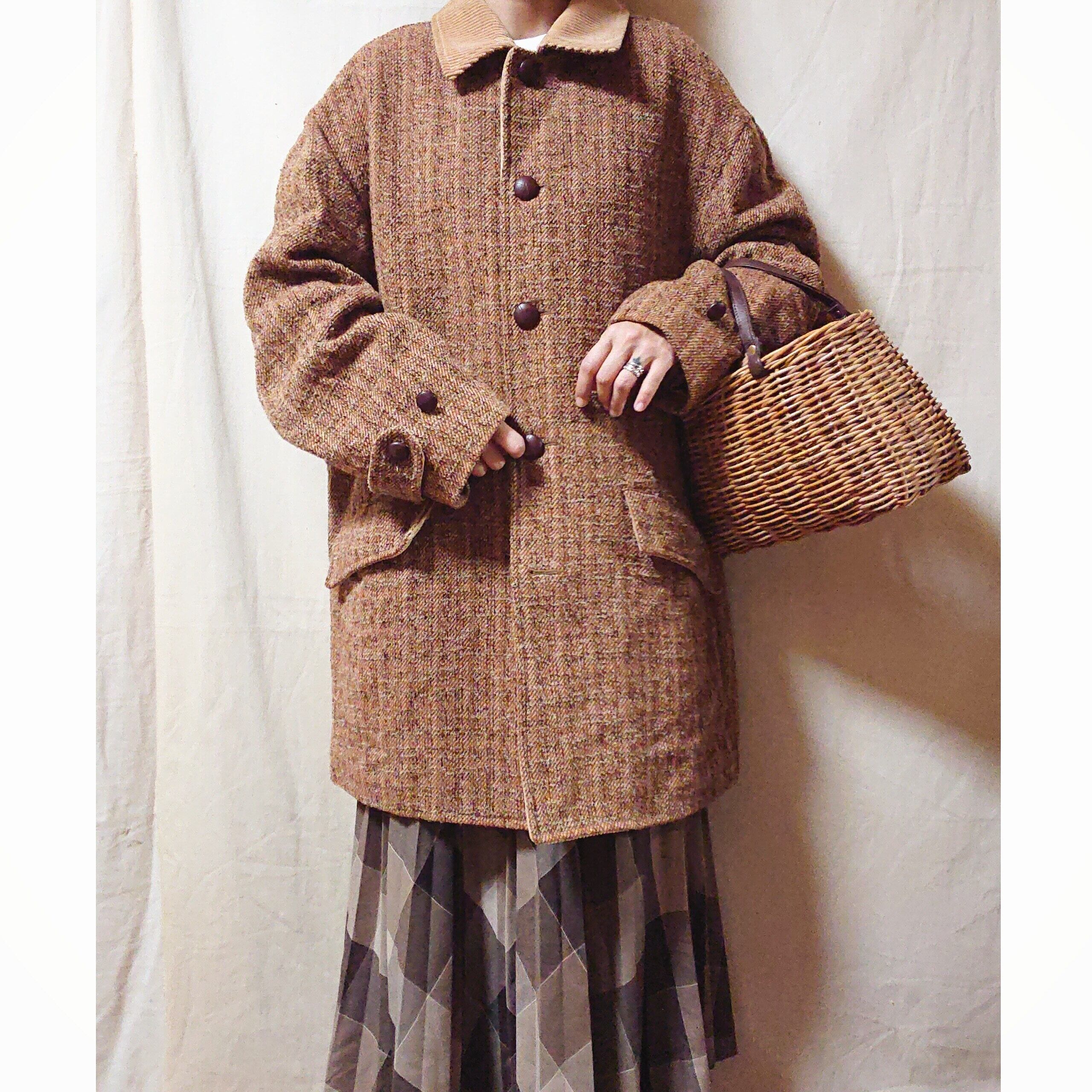 ツイード素材×コーデュロイ素材のコートで、おしゃれ感たっぷりです。