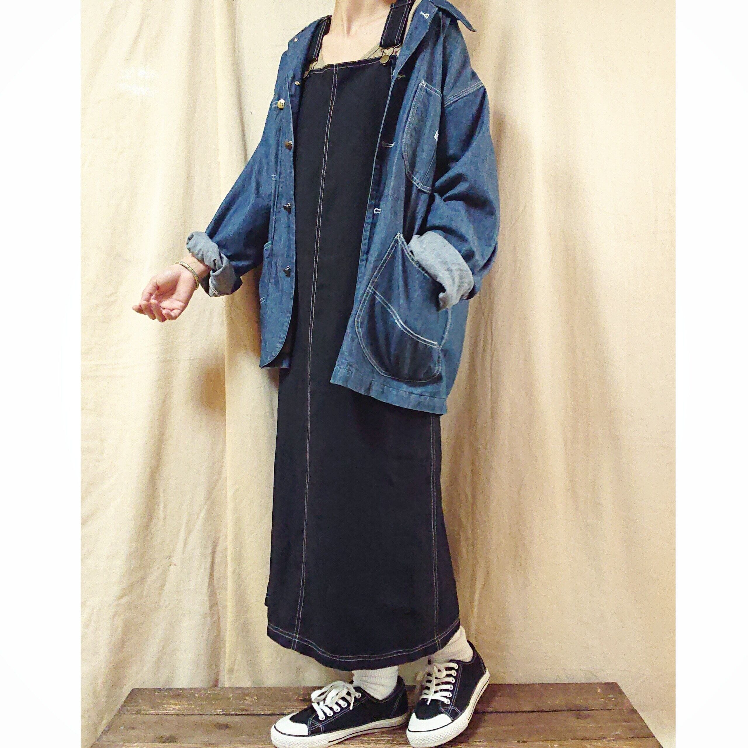 サロペットタイプのデザインがとても可愛い、vintageのワンピースです。