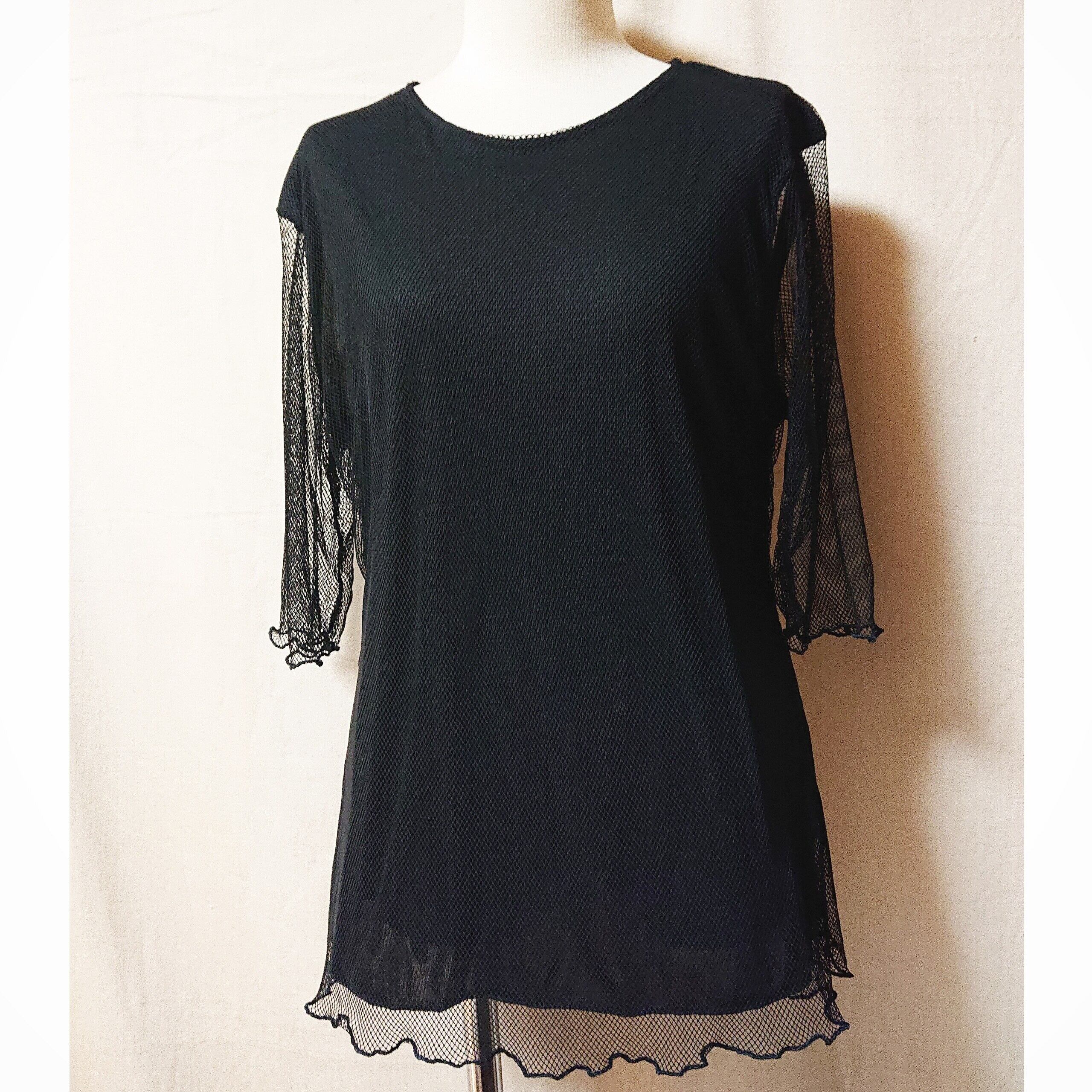 重ね着したようなレイヤードタイプのデザインで、袖は透け感のあるシアー素材になっています。
