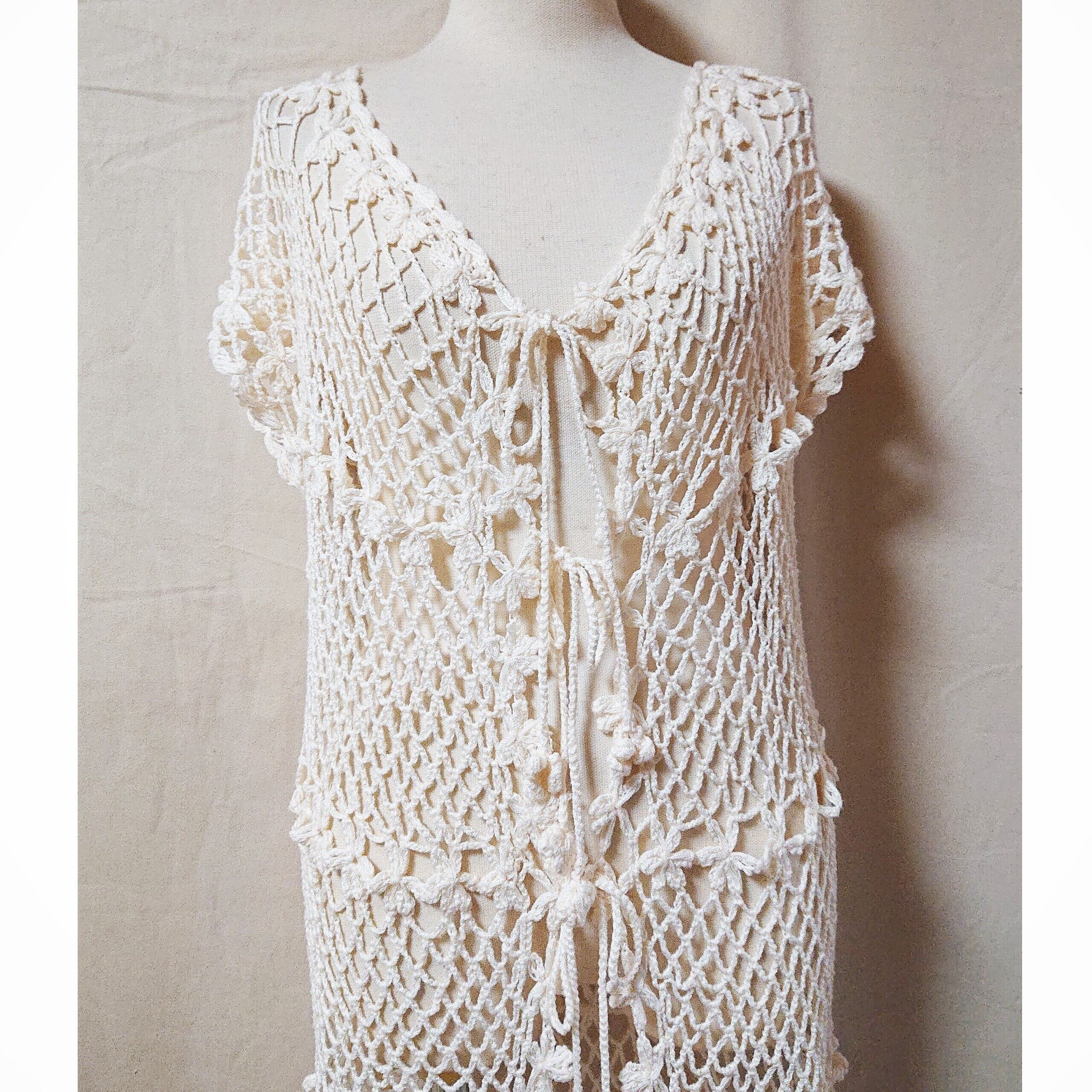 クロシェ編みがたまらなく可愛い、vintageのロングトップスです。