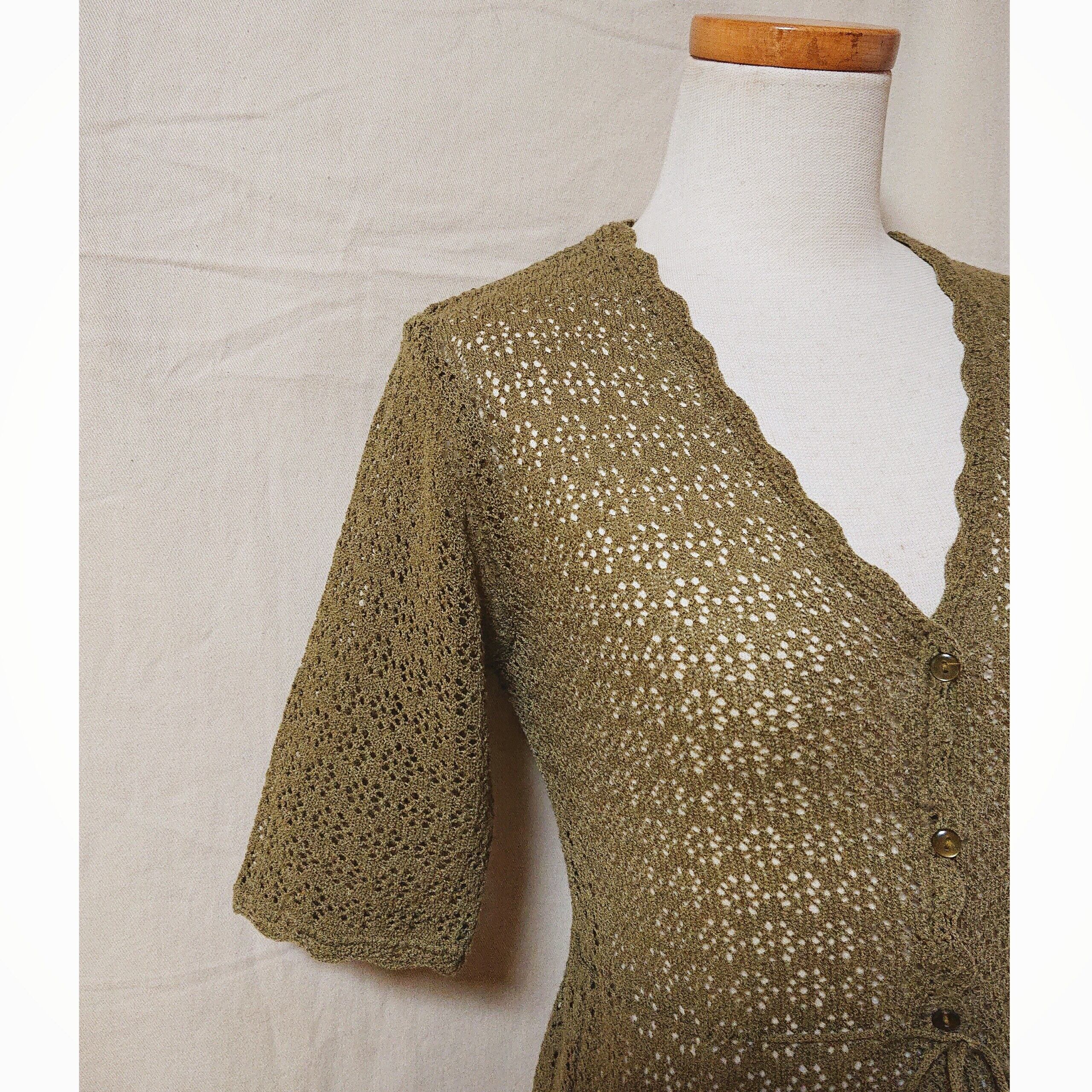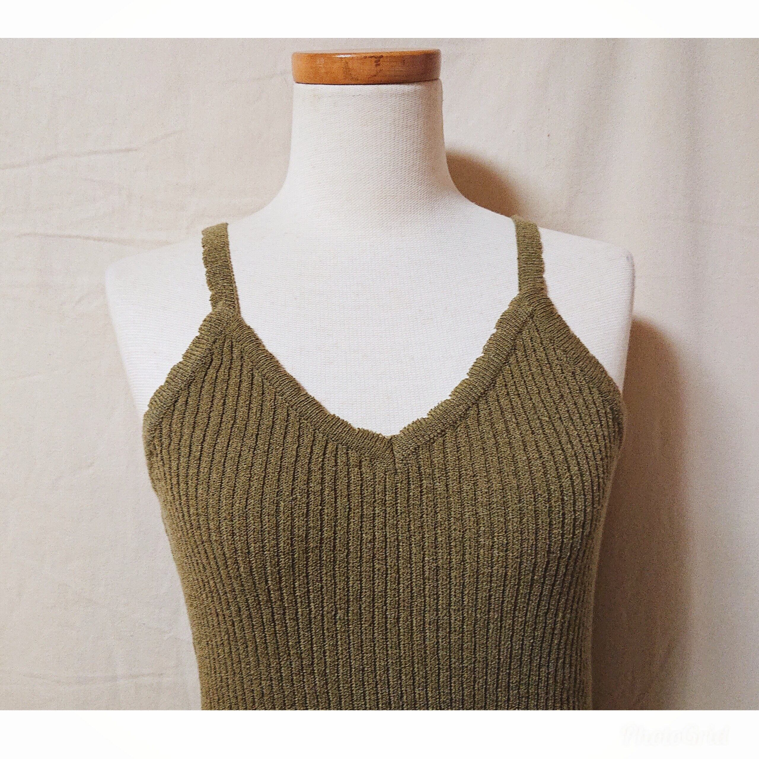 クロシェレースタイプのカーディガンと、リブデザインがおしゃれなキャミソールがセットになった、アンサンブルタイプのトップスです。