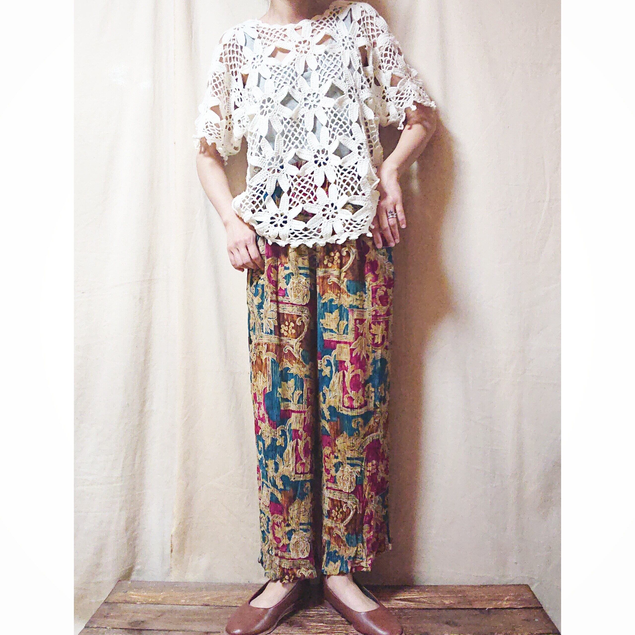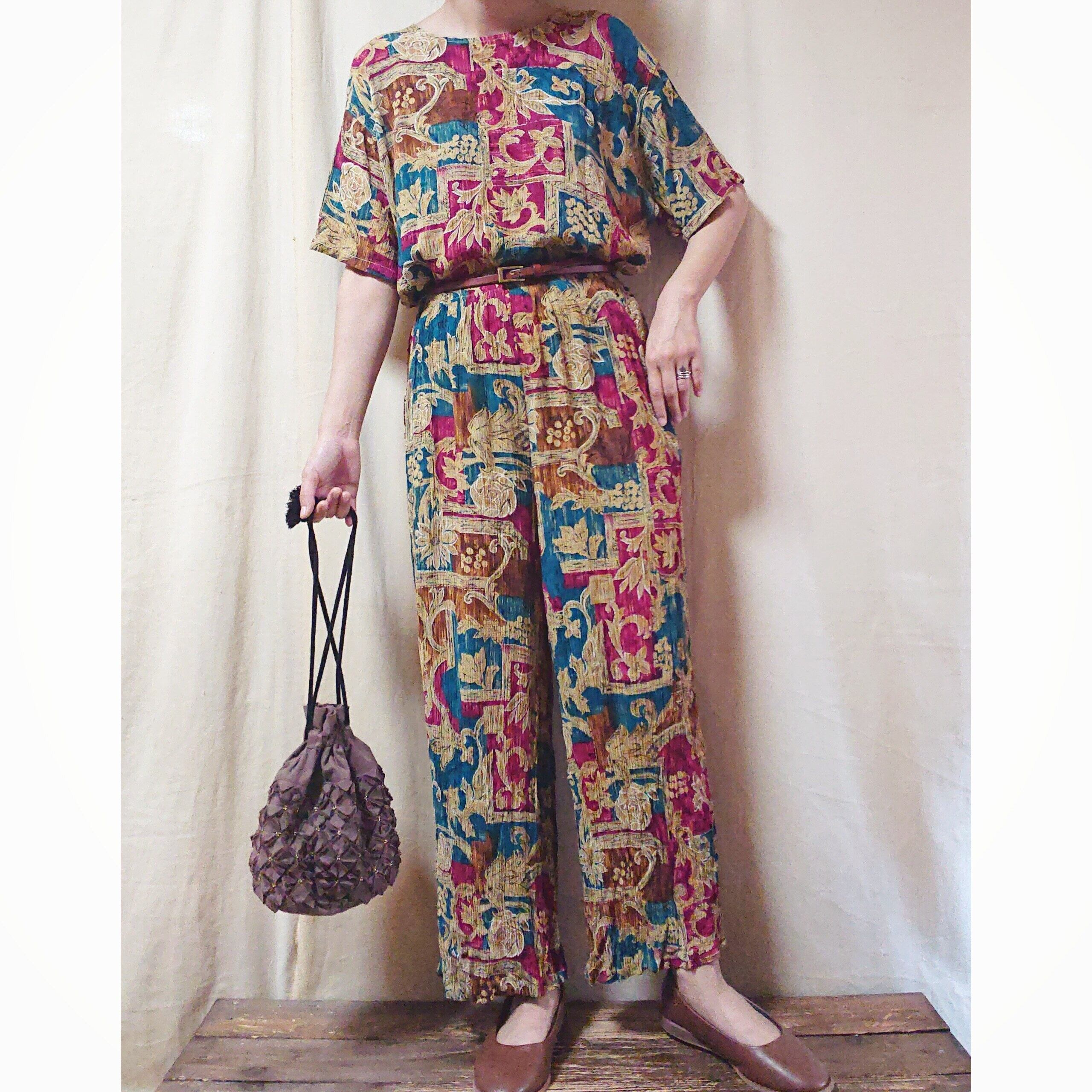 オリエンタルチックな柄が、とても素敵なvintageのセットアップです。