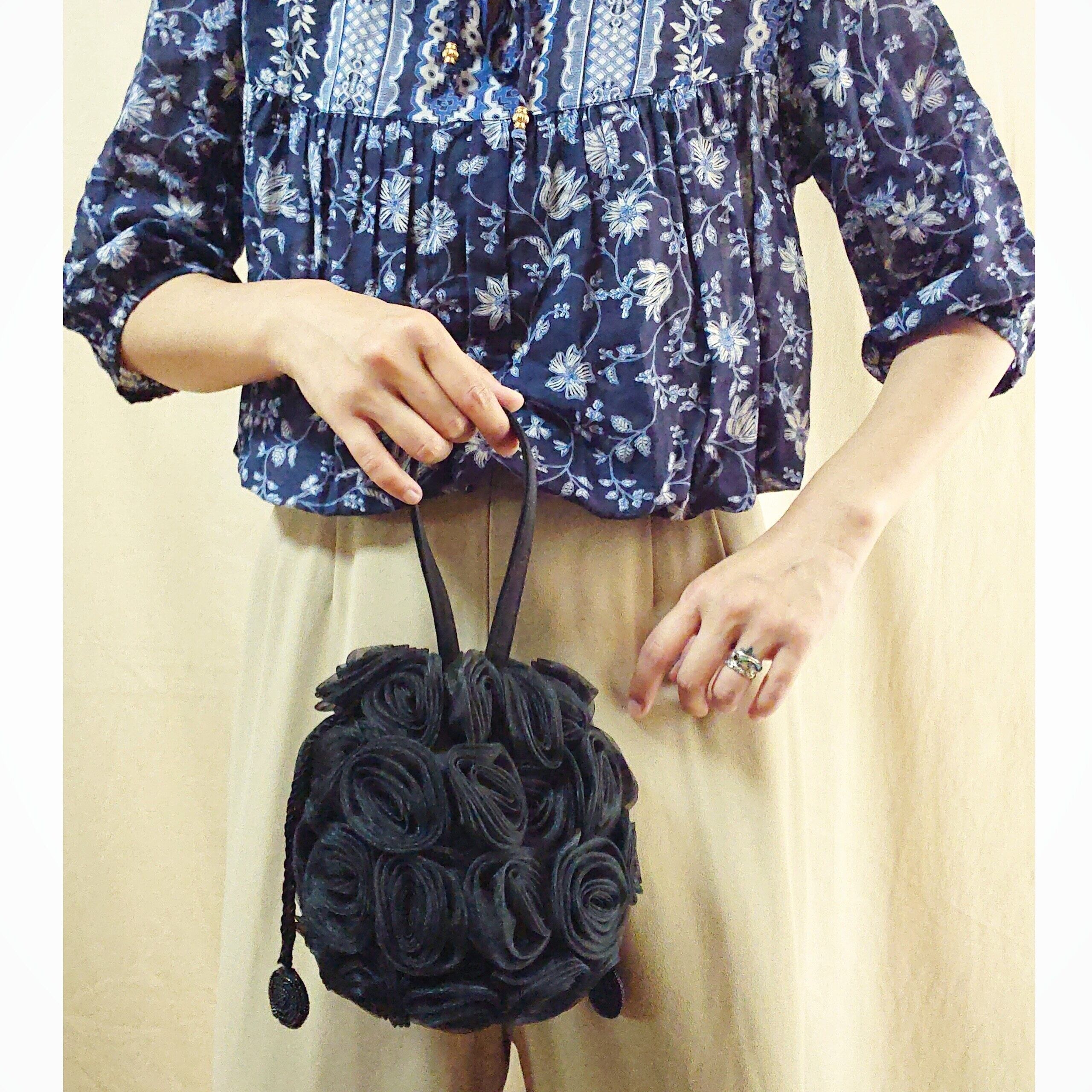 シアー素材のお花モチーフが組合わさったたまらなく可愛いデザインで、コロンとした丸みのあるフォルムもすごくおしゃれです。