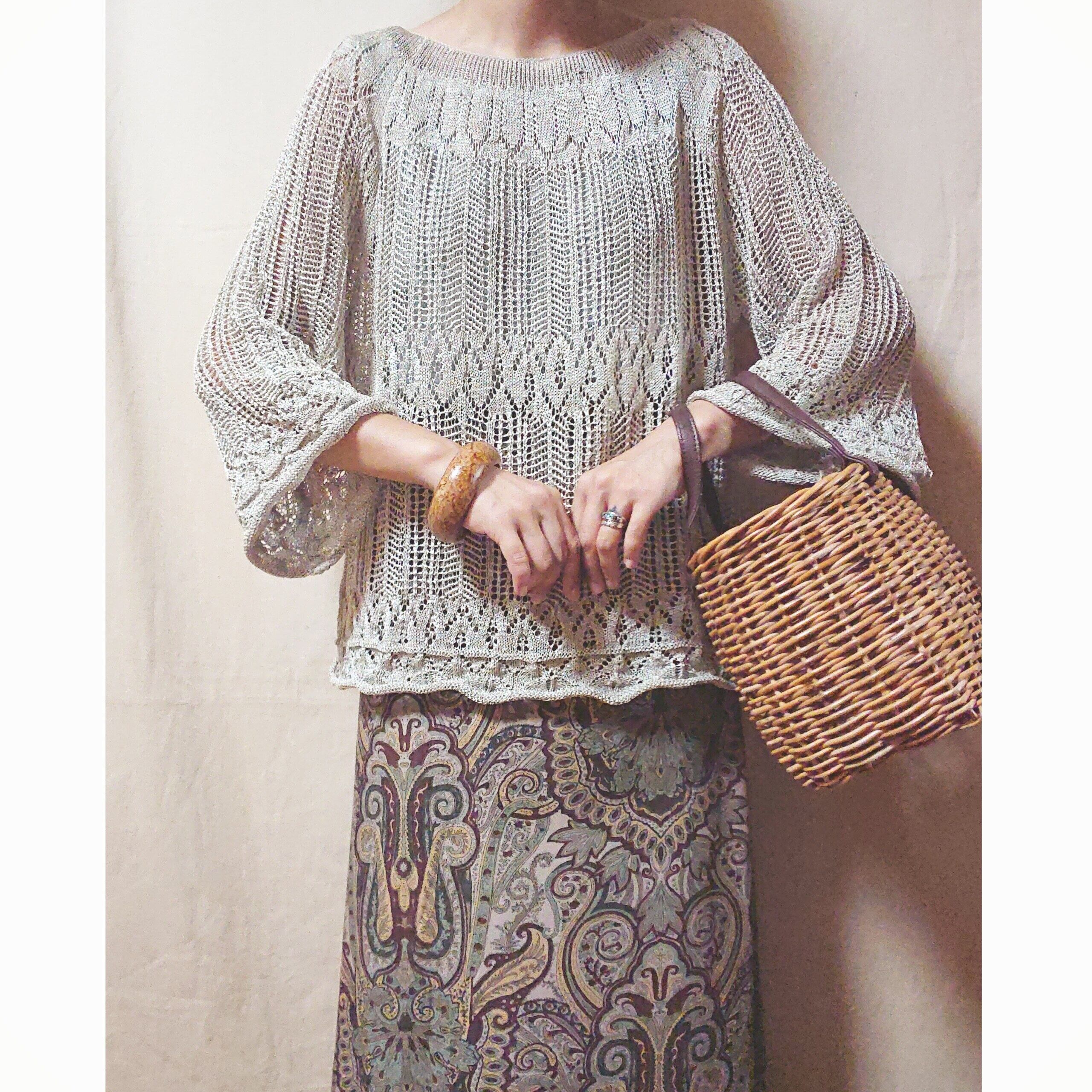 クロシェレース編みがたまらなく素敵な、vintageのニットです。