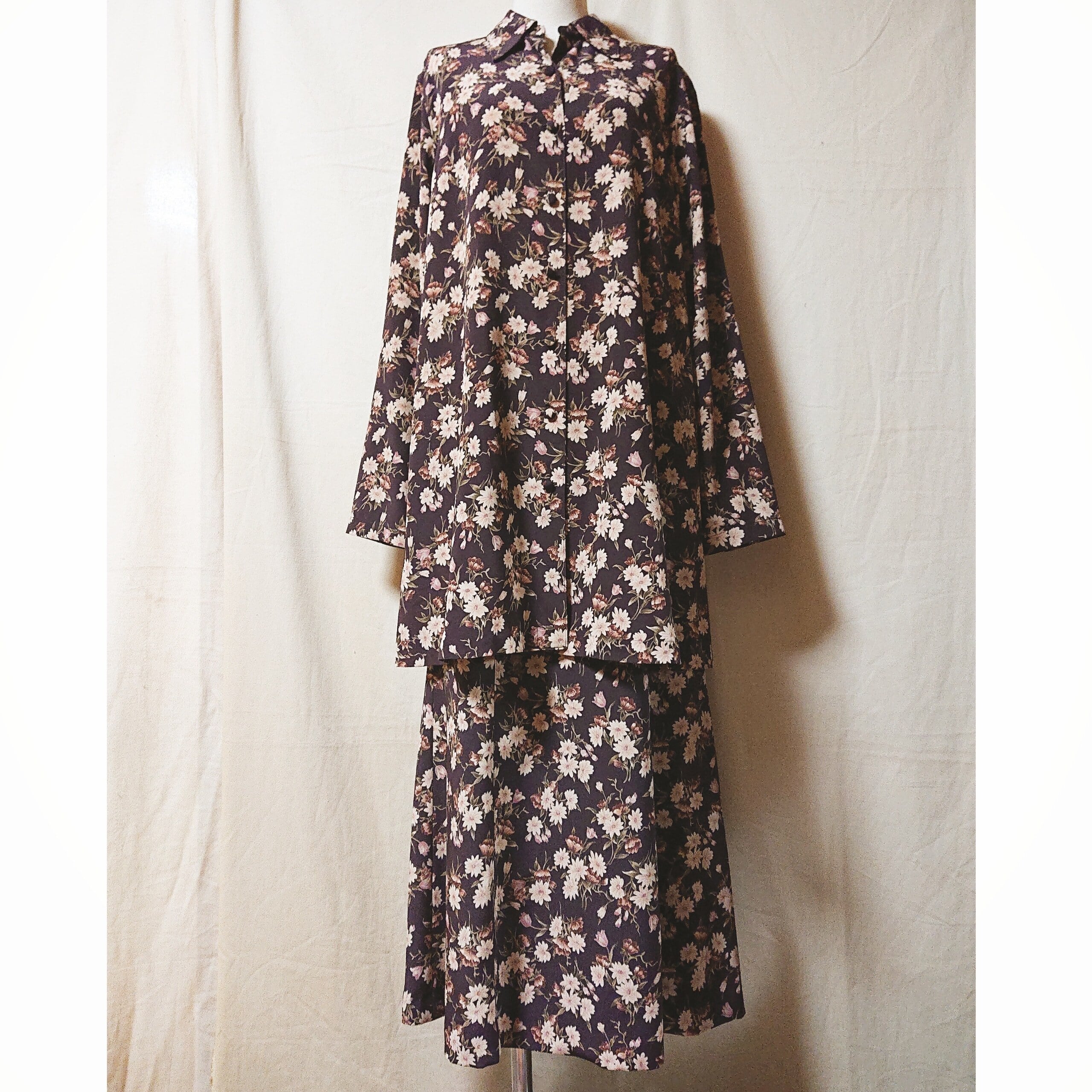 雰囲気たっぷりの花柄がとても素敵な、vintageのセットアップです。