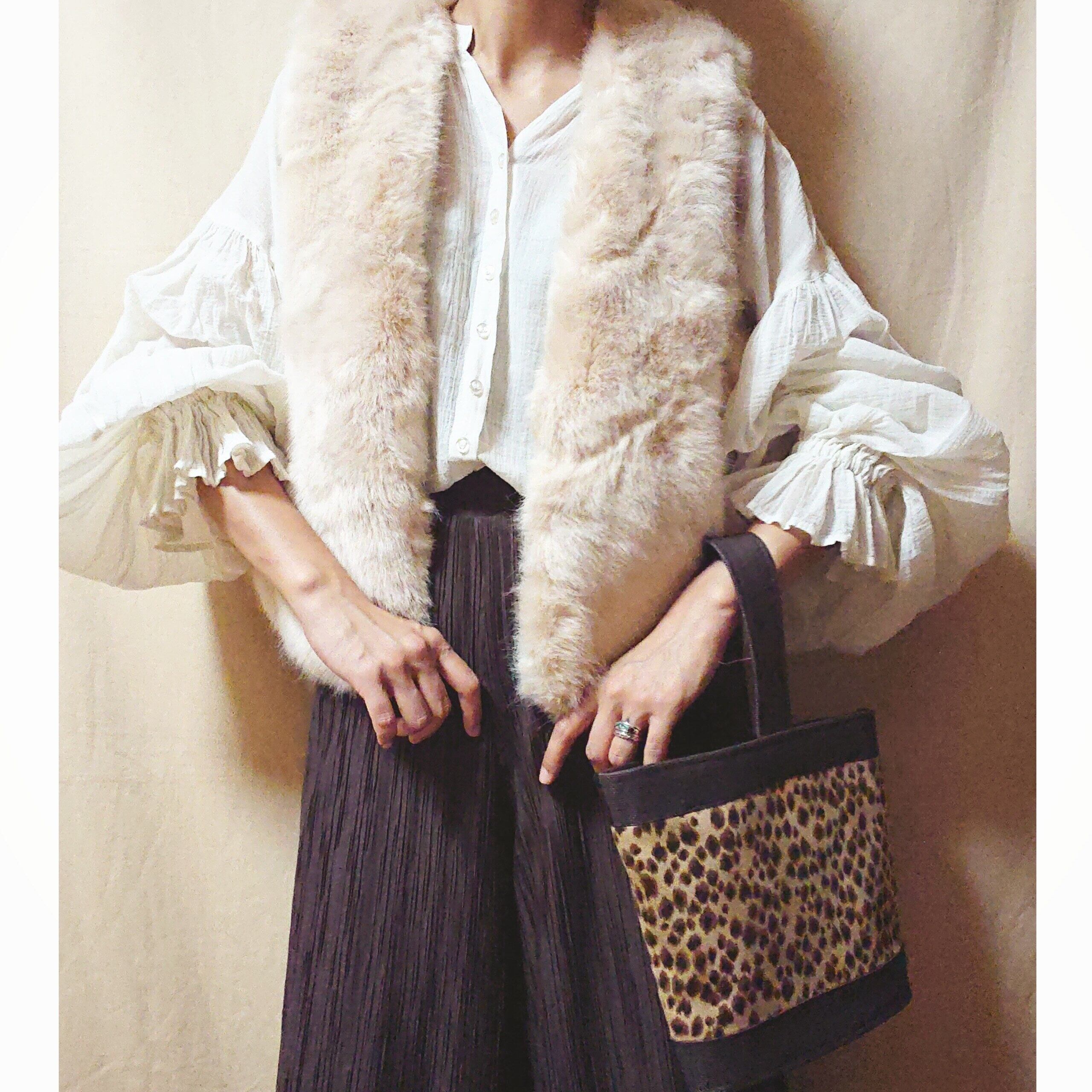 また面倒なお手入れや、着用時に毛が抜け落ちてお洋服につく心配もないので、すごく扱いやすいタイプのベストです。
